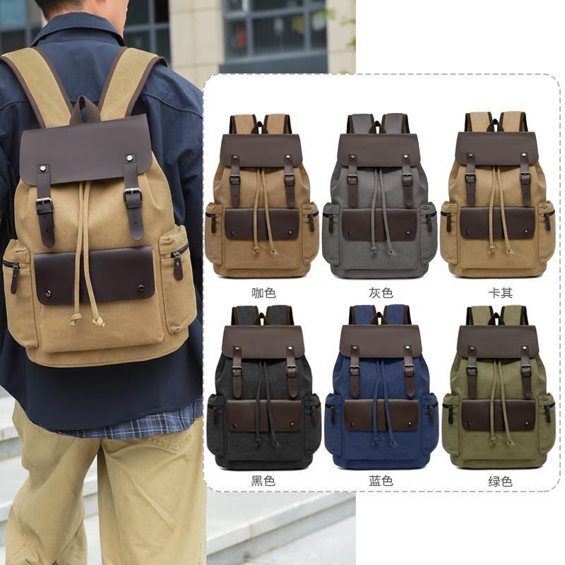 Fábrica de Origem Vendedor Quente Transfronteiriço Mochila Masculina Simples Lona Grande Capacidade Tendência Retrô Europeia e Americana Dropshipping de Uma Peça