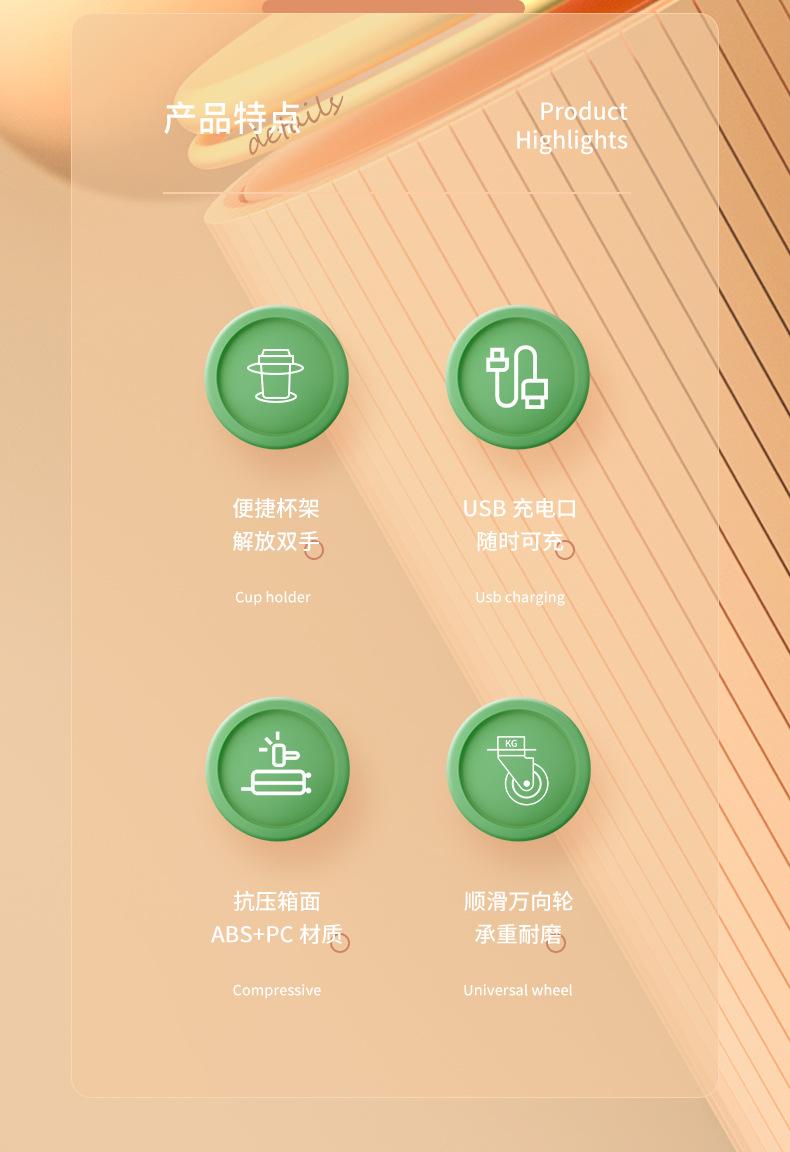 Crescent white/scratch-resistant and wear-resistant zipper model [front hook + charging + water cup holder + a...