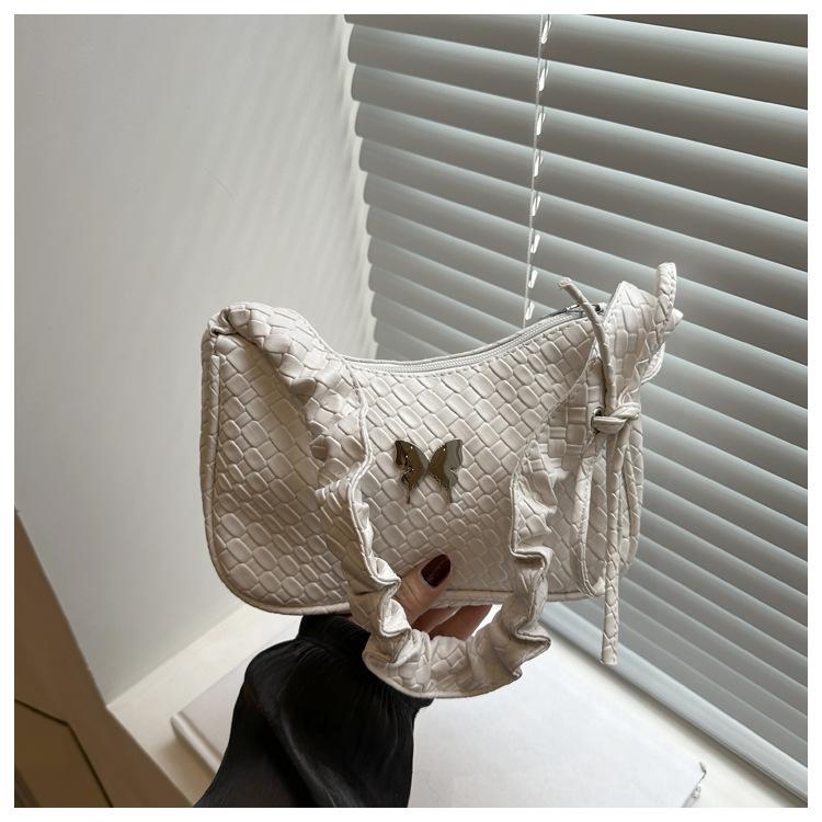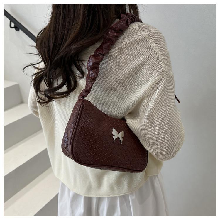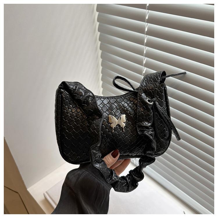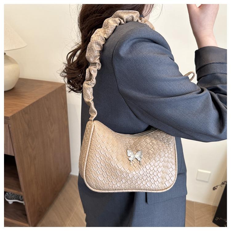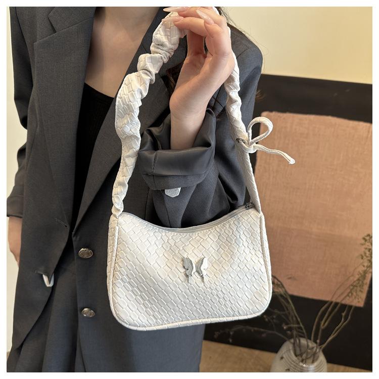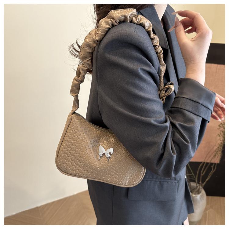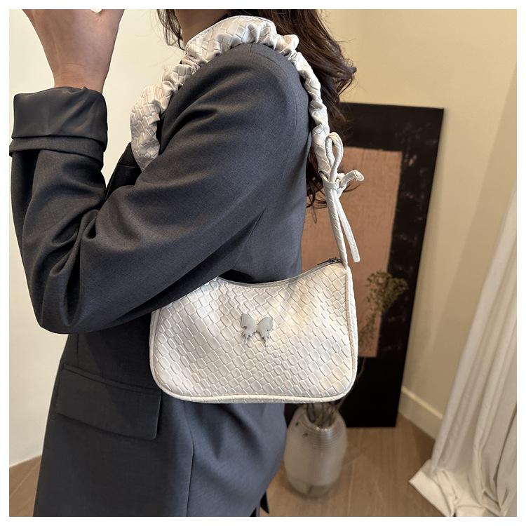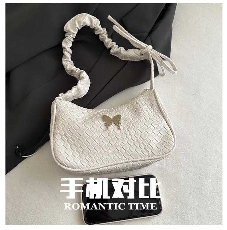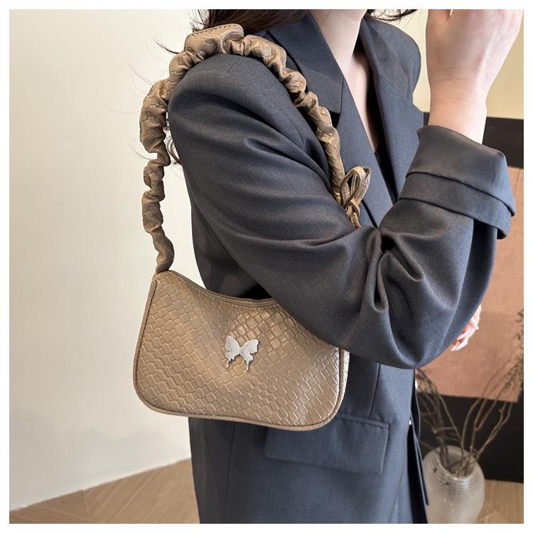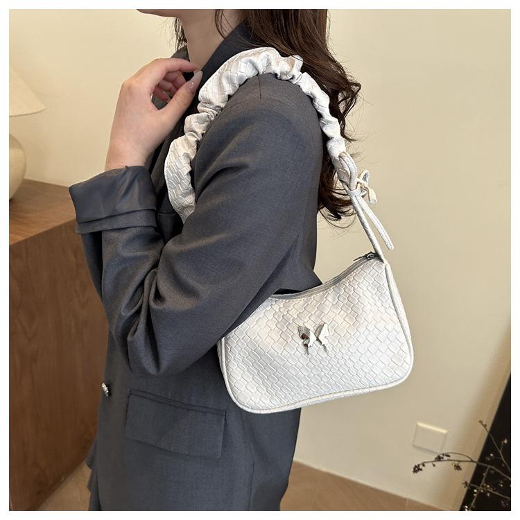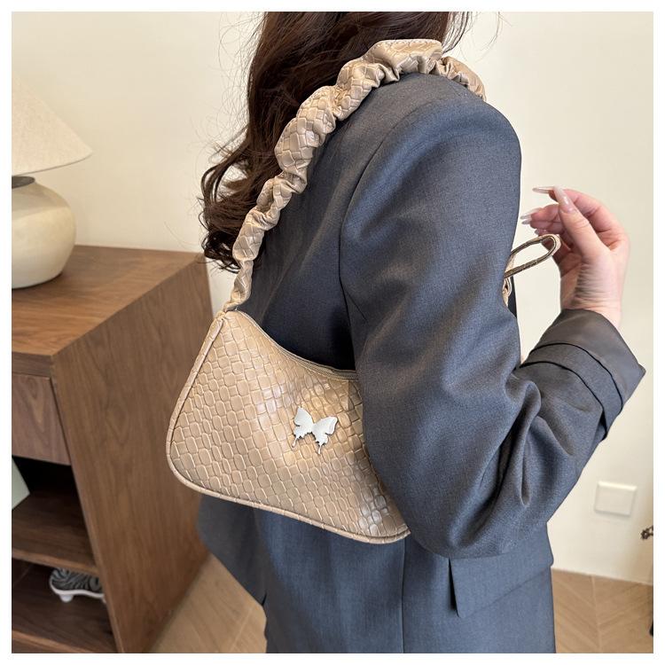 Bolsa Feminina Plissada de Mão com Padrão Tecido Transfronteiriço de Grande Capacidade 2025 Nova Bolsa de Ombro Borboleta de Primavera Bolsa Axilar Multifuncional