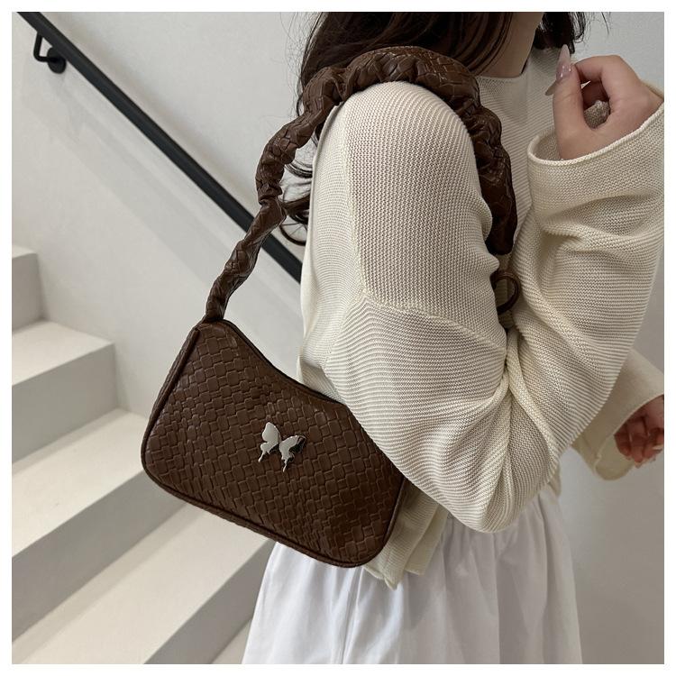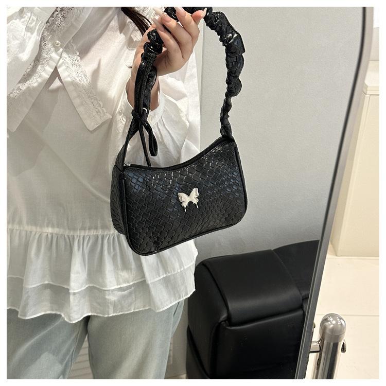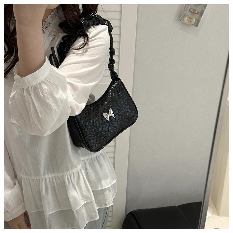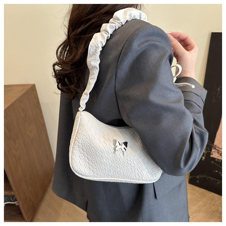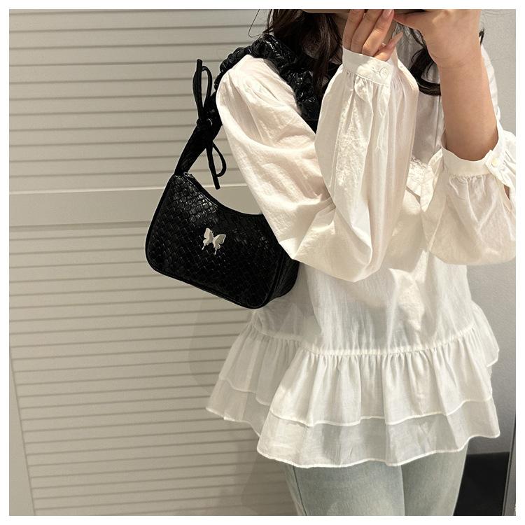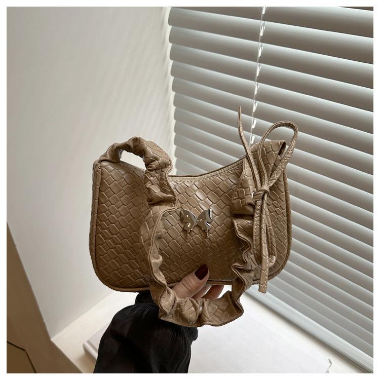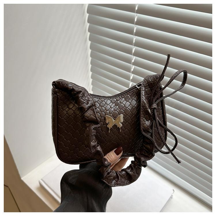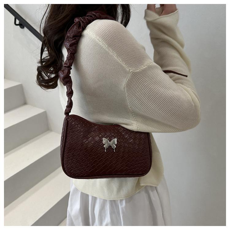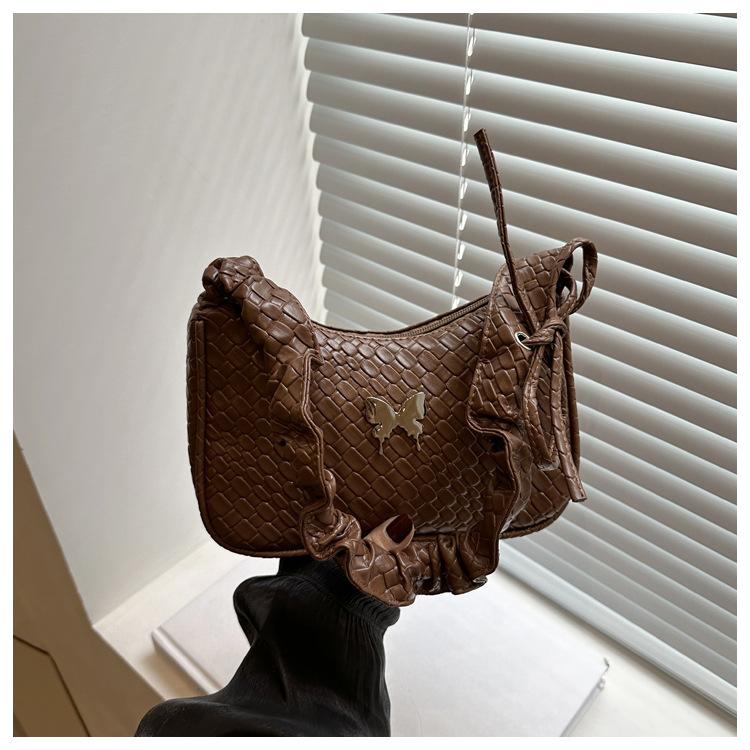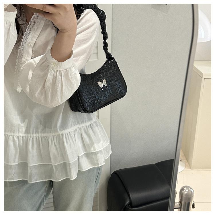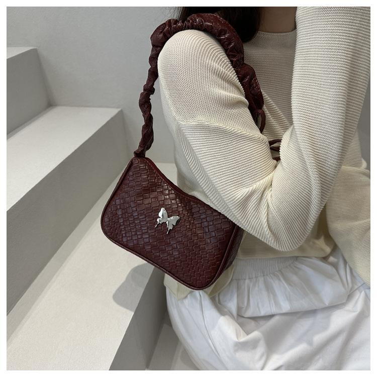 Bolsa Feminina Plissada de Mão com Padrão Tecido Transfronteiriço de Grande Capacidade 2025 Nova Bolsa de Ombro Borboleta de Primavera Bolsa Axilar Multifuncional