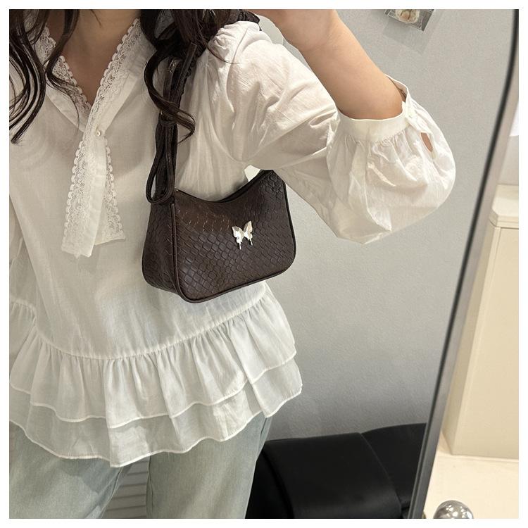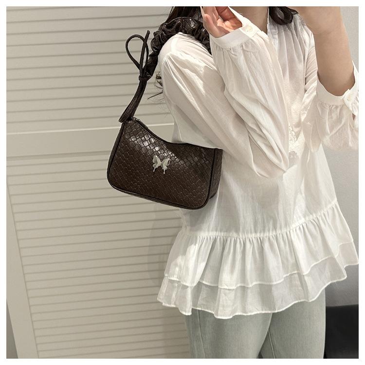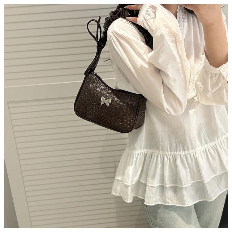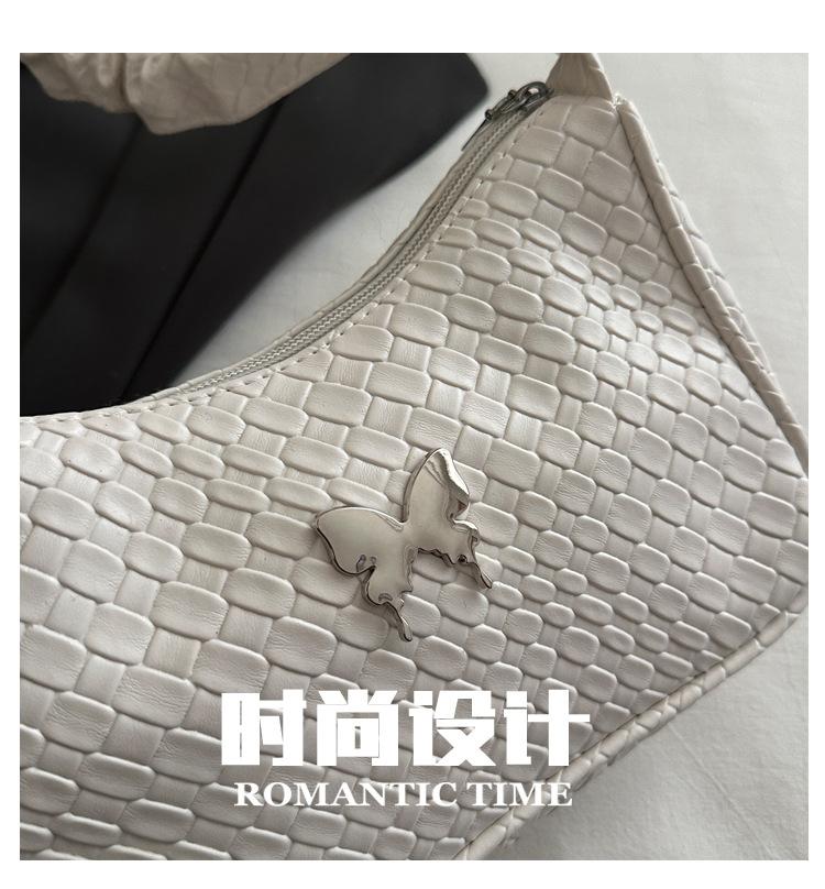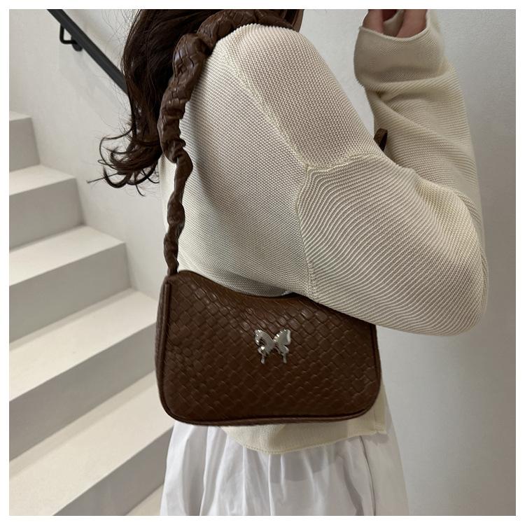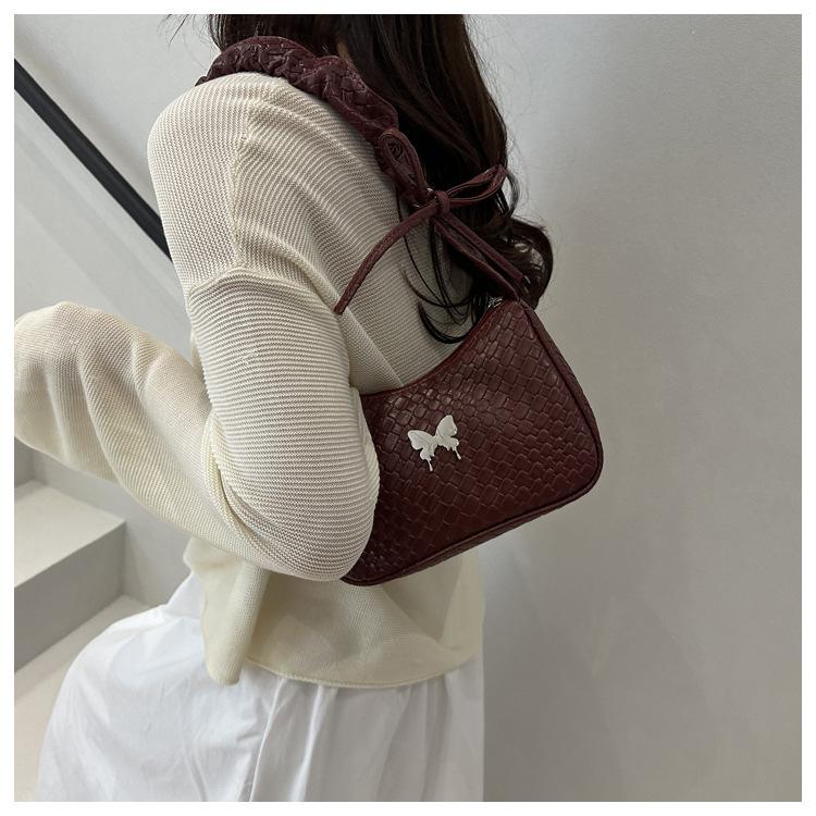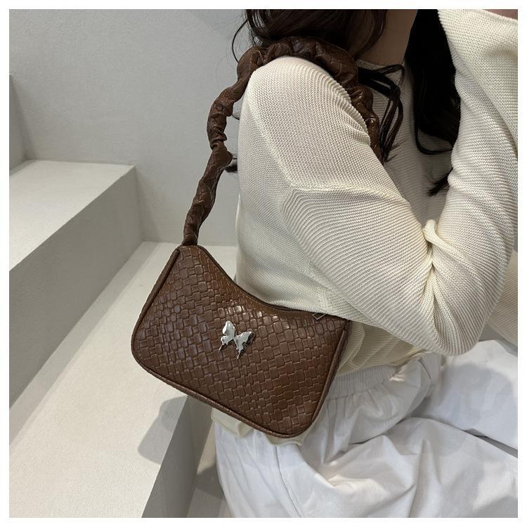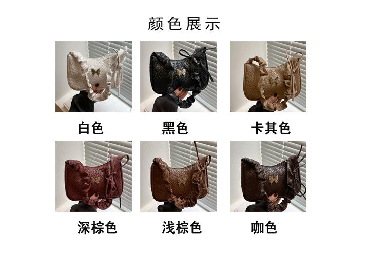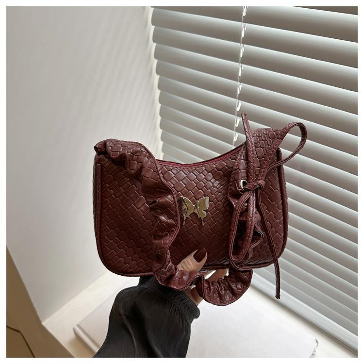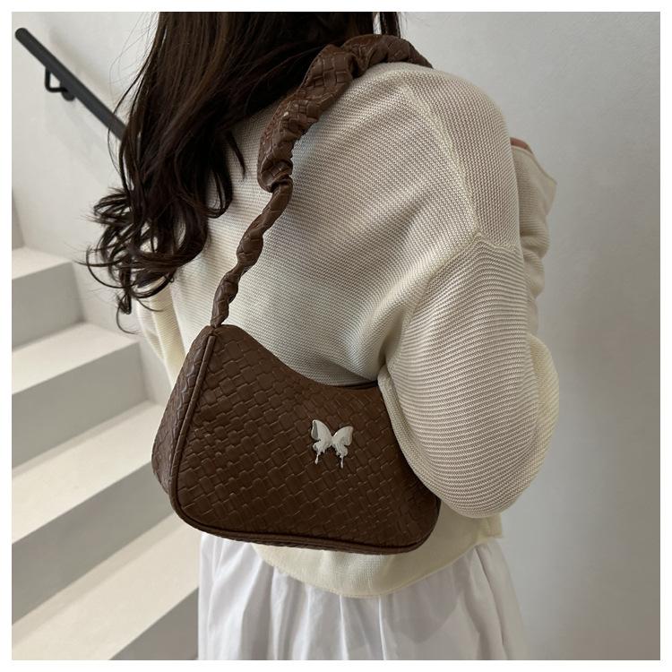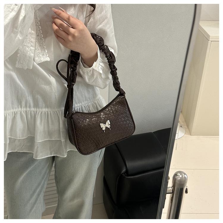Bolsa Feminina Plissada de Mão com Padrão Tecido Transfronteiriço de Grande Capacidade 2025 Nova Bolsa de Ombro Borboleta de Primavera Bolsa Axilar Multifuncional