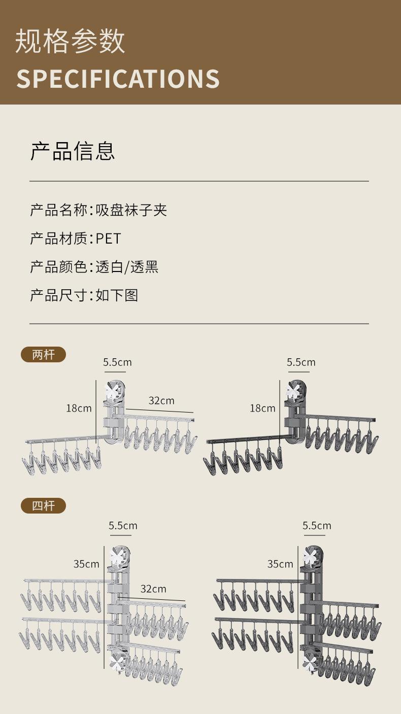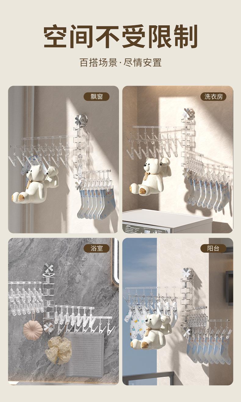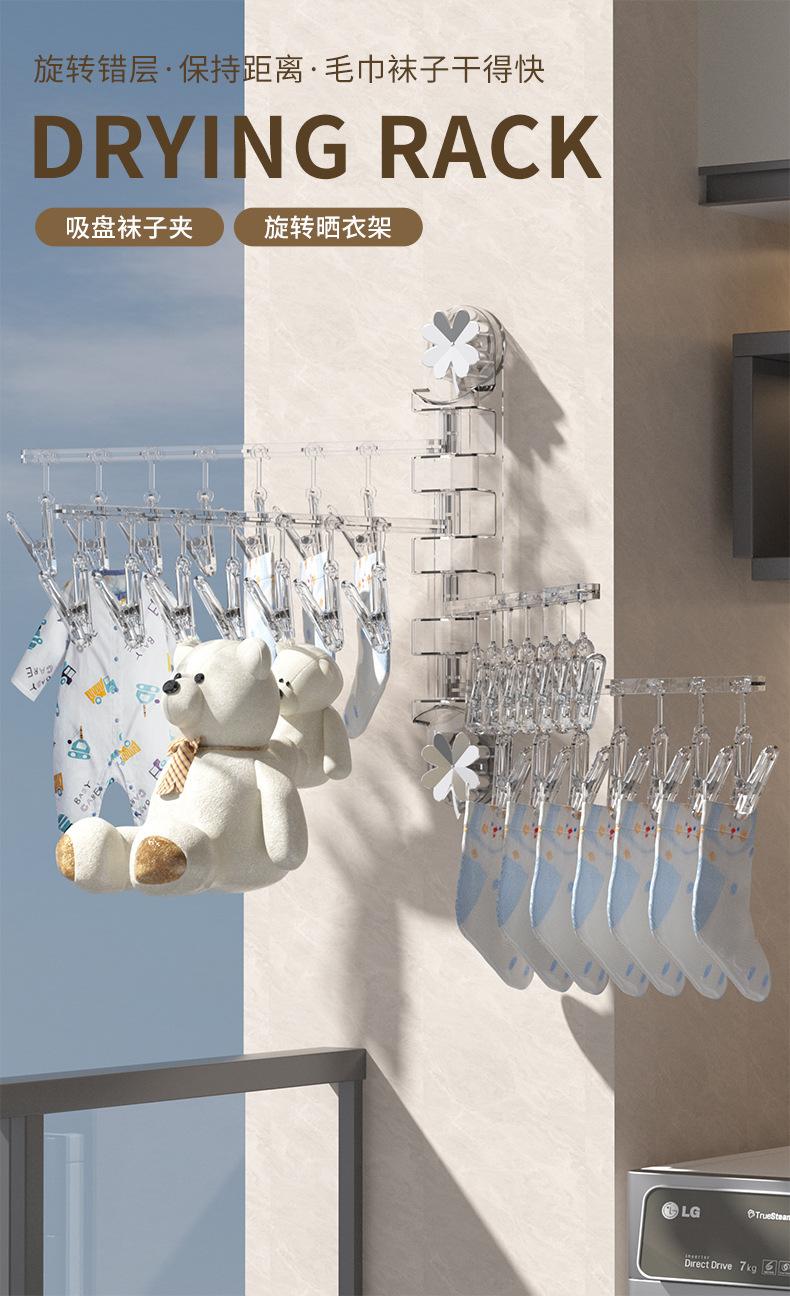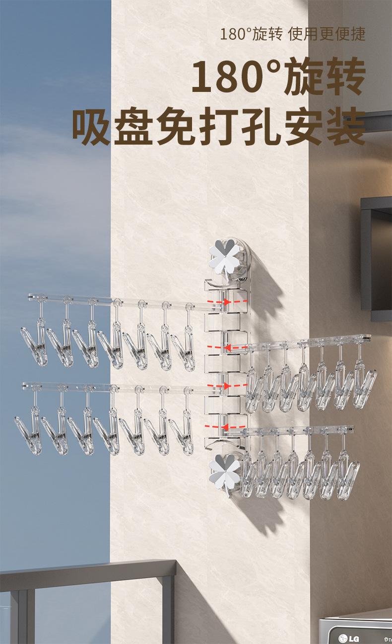 Escorredor de Ventosa Varanda Dobrável Armazenamento Sem Furos Meias Roupa Íntima Escorredor Multicabeças Cabide Doméstico com Clipe