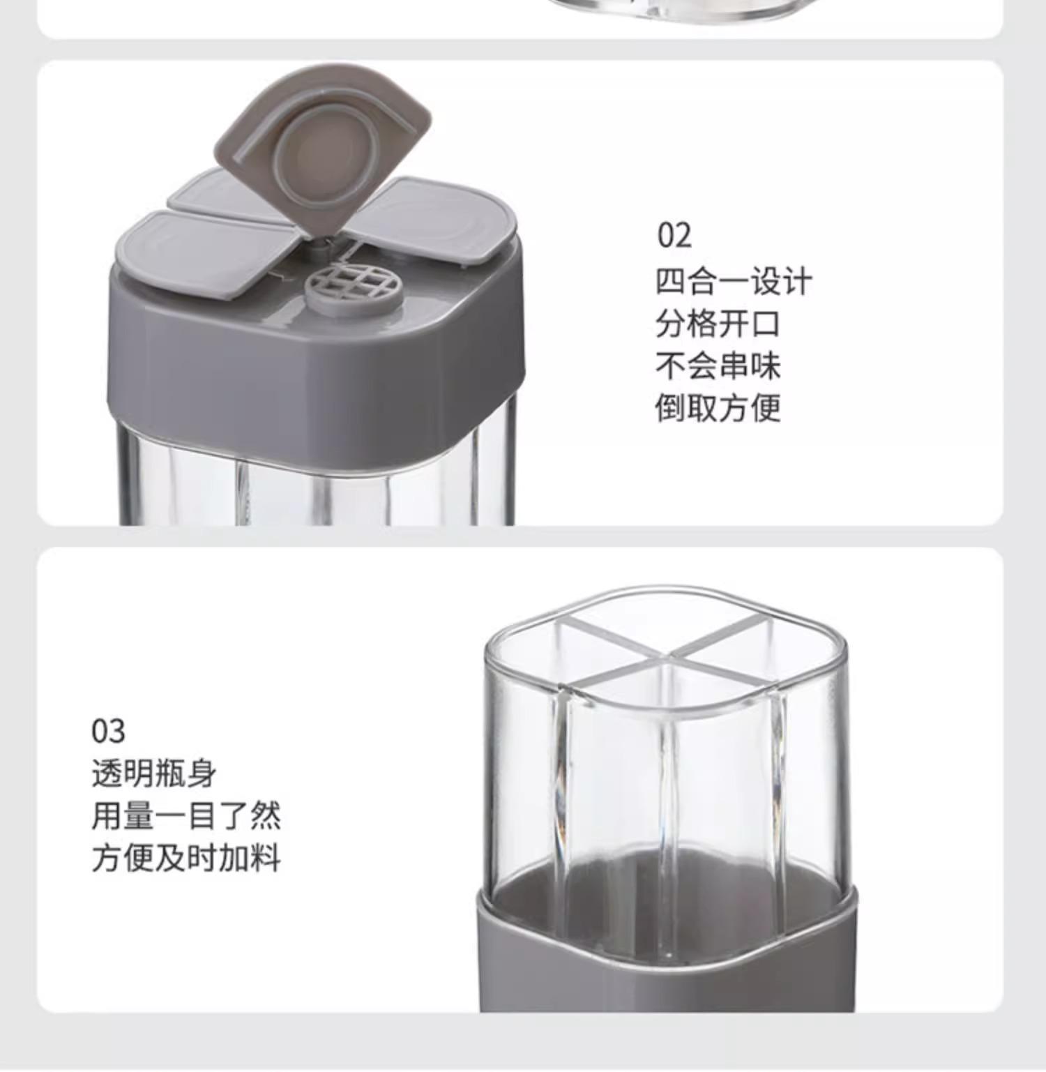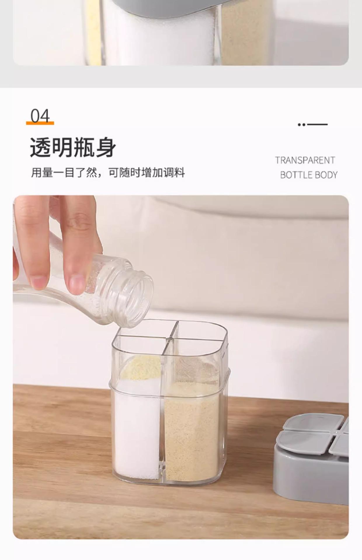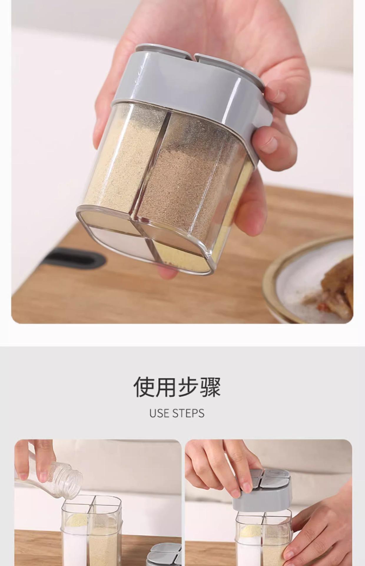 Pote de Tempero Cozinha Sal Açúcar Pó de Cominho Pote Criativo de Alta Qualidade Garrafa de Tempero para Churrasco Uma Peça Múltiplas Divisórias Quatro em Um Tempero