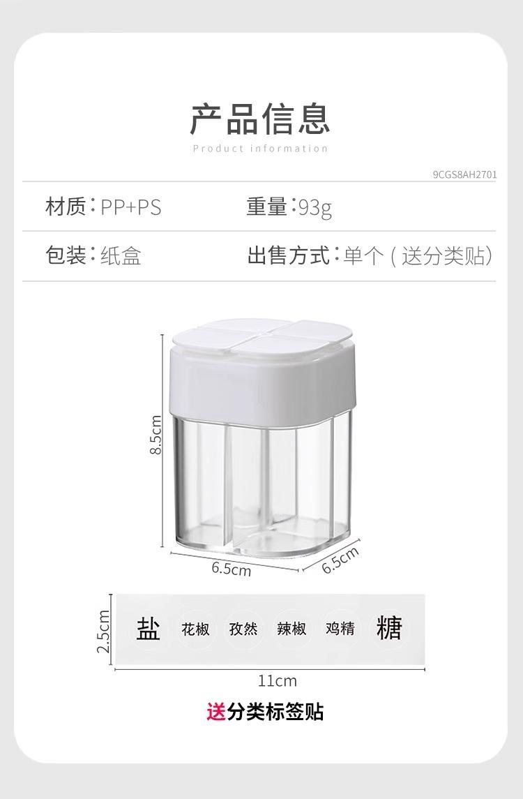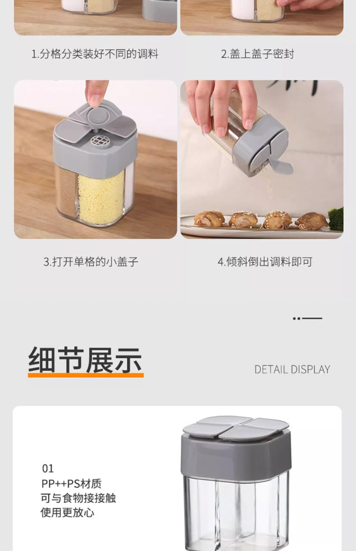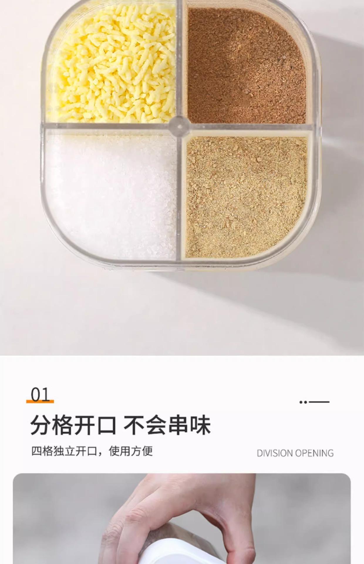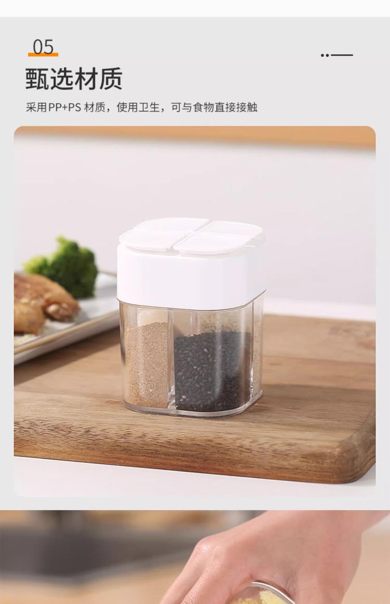 Pote de Tempero Cozinha Sal Açúcar Pó de Cominho Pote Criativo de Alta Qualidade Garrafa de Tempero para Churrasco Uma Peça Múltiplas Divisórias Quatro em Um Tempero