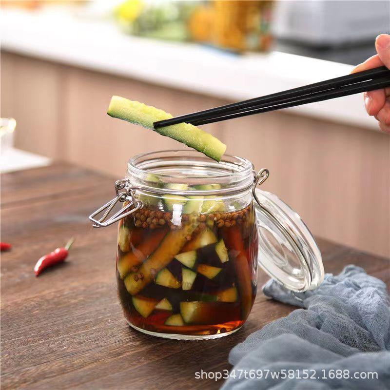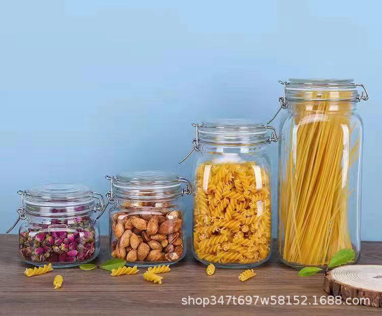 Pote de Vidro com Tampa de Pressão, Pote para Armazenar Grãos e Frutas Secas, Garrafa de Vidro Doméstica, Pote para Armazenar Alimentos de Grande Capacidade, Vedação de Cozinha