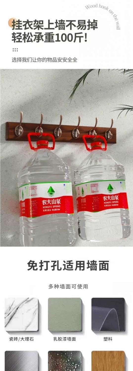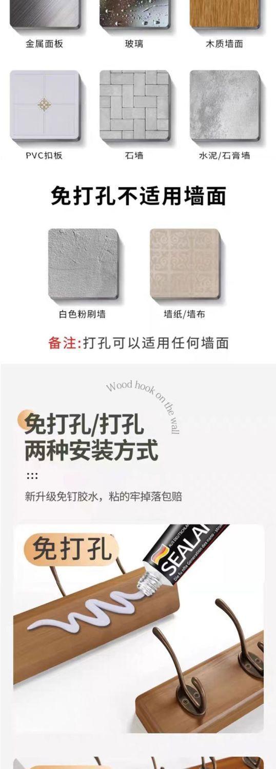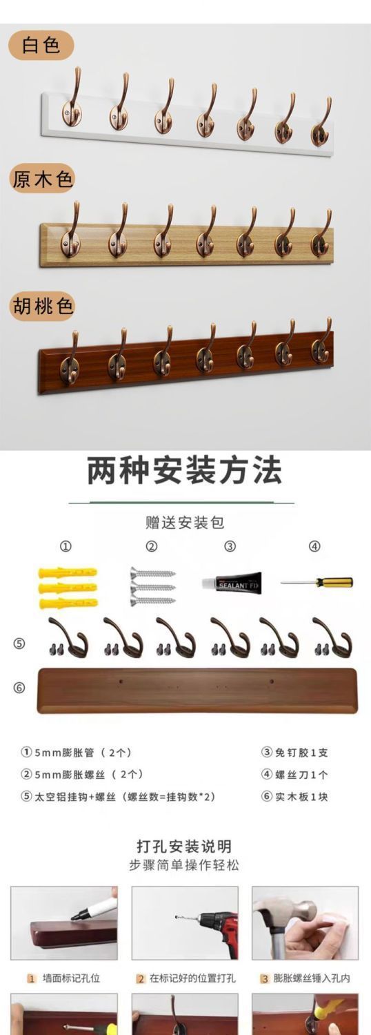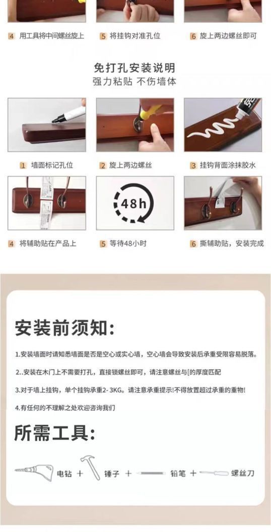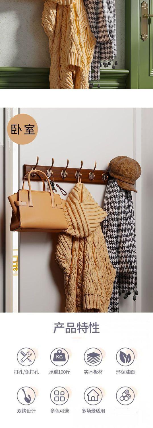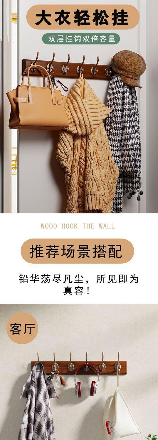 Walnut color (2 hooks) imported rubber wood - no need to drill holes, Walnut color (4 hooks) imported rubber w...