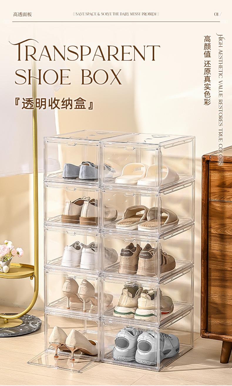 Caixa de armazenamento de sapatos, caixa transparente completa à prova de poeira, armário de sapatos, caixa de armazenamento de sapatos de plástico espessado, caixa de armazenamento de sapatos simples, caixa de exibição