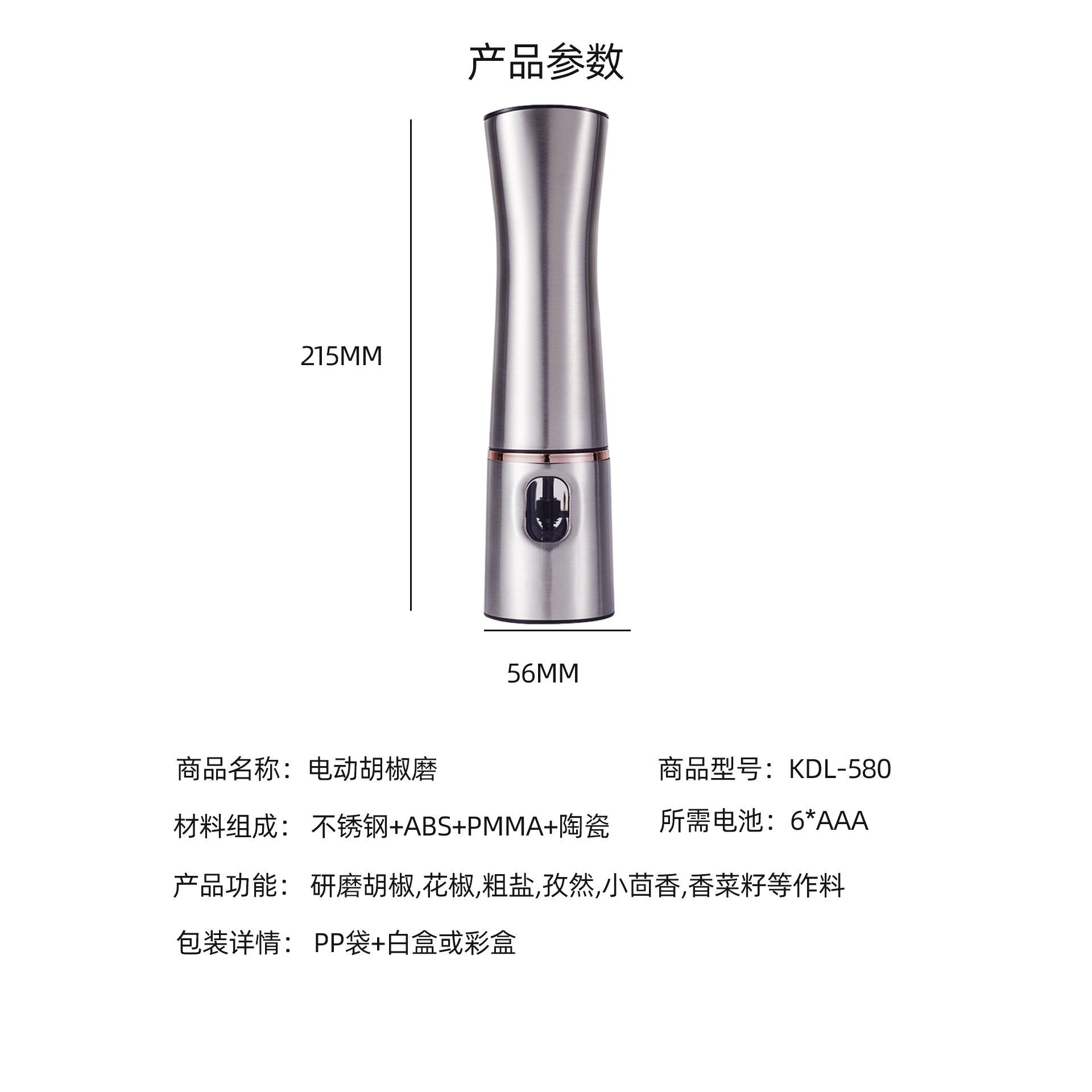 Moedor de pimenta elétrico de aço inoxidável Spot agora moendo pimenta preta em grãos pimenta sal marinho cozinha moagem automática garrafa