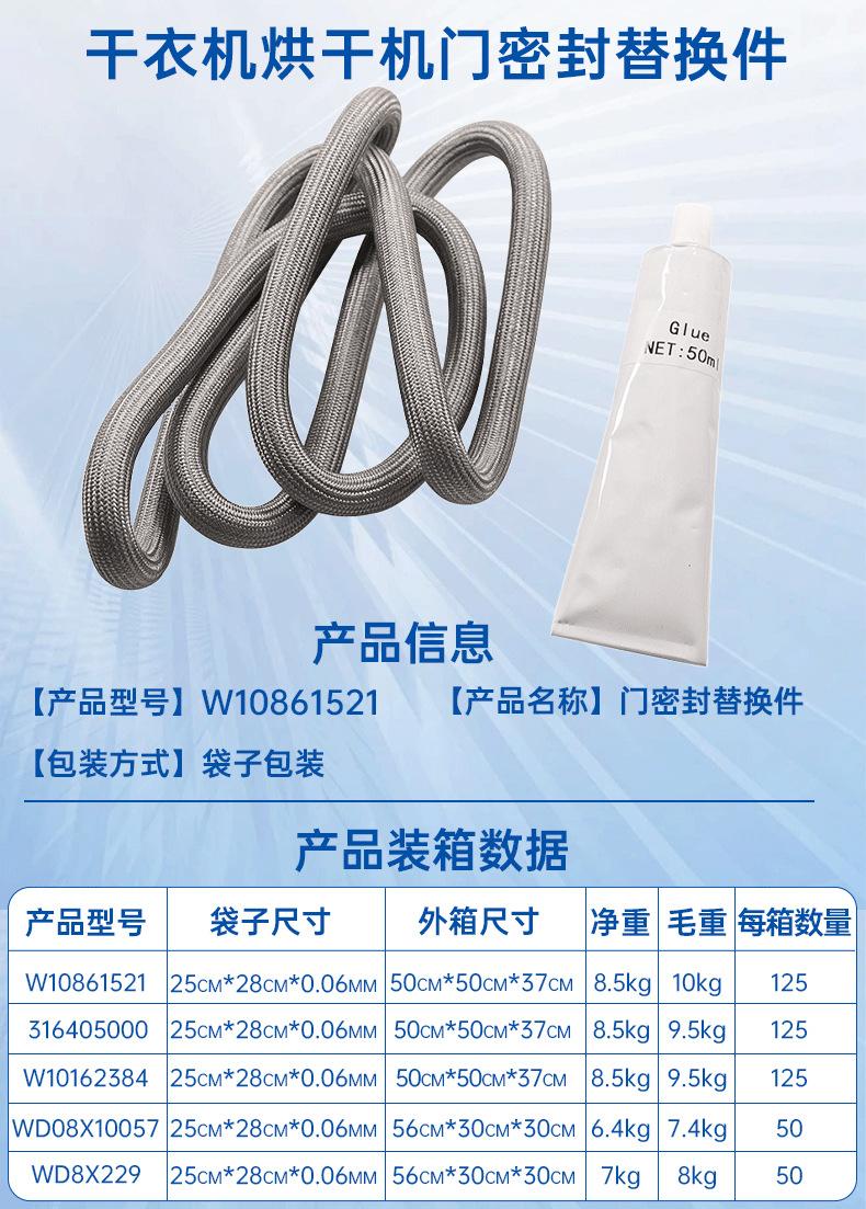 W10861521 peças de reposição para vedação da porta da secadora em estoque atacado acessórios para secadora