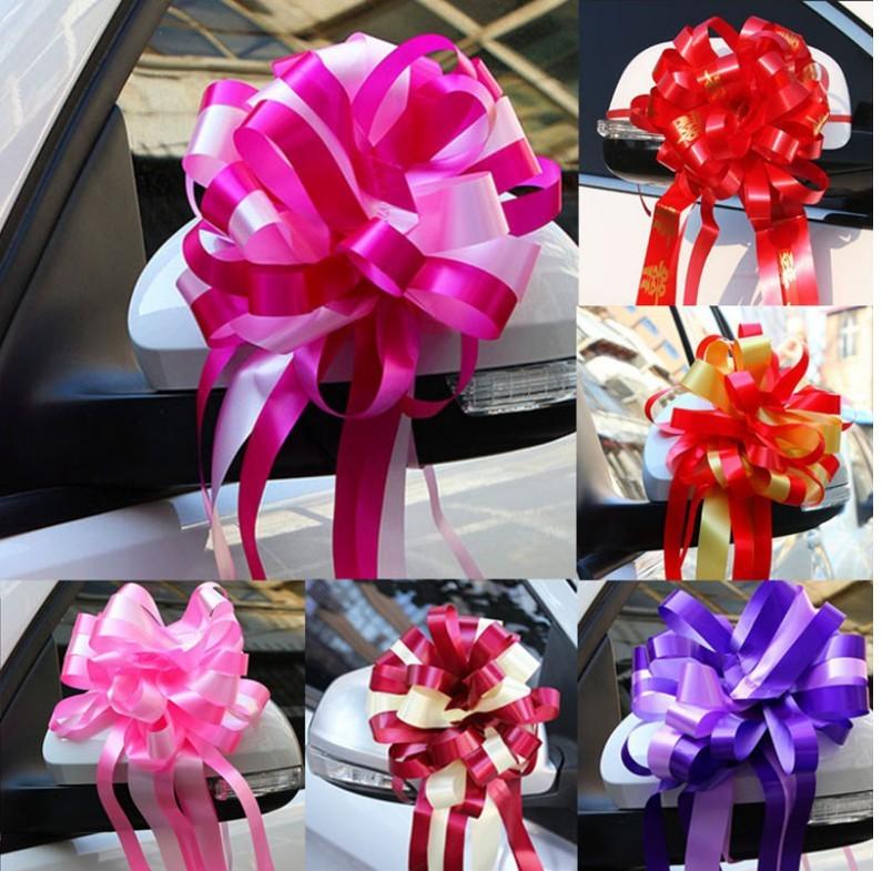 Decoração de carro de casamento, decoração de flores de casamento, fita de espelho retrovisor de casamento, fita de bola de casamento, flor