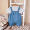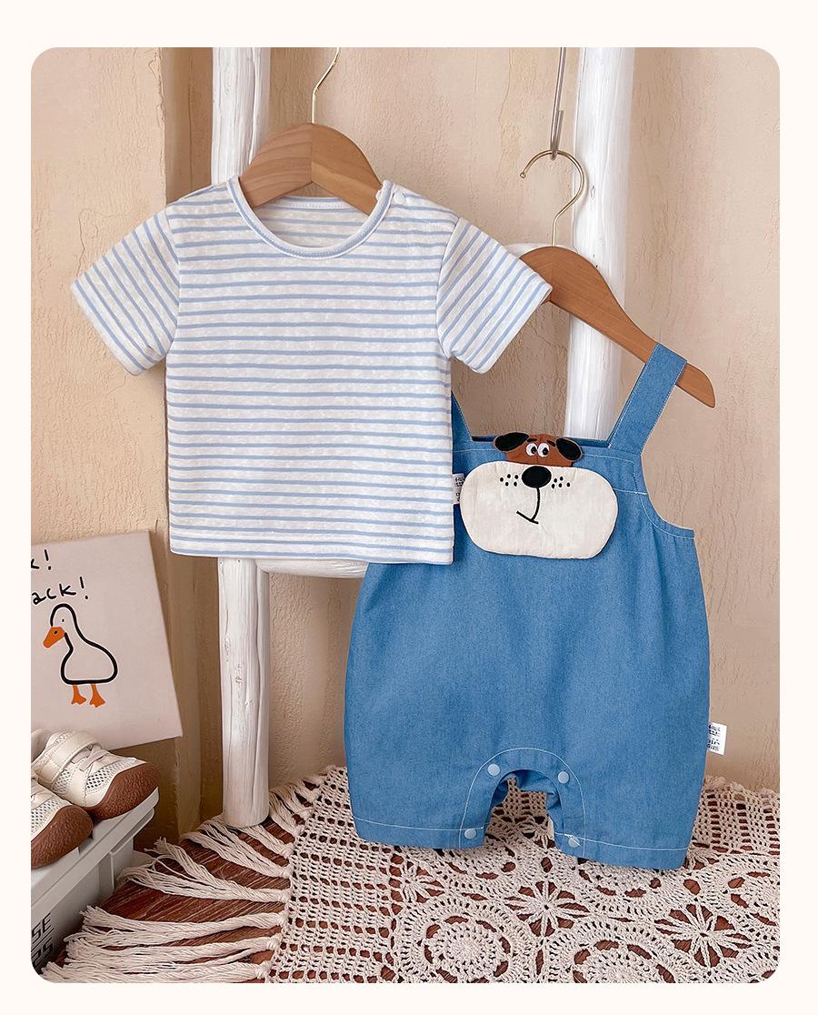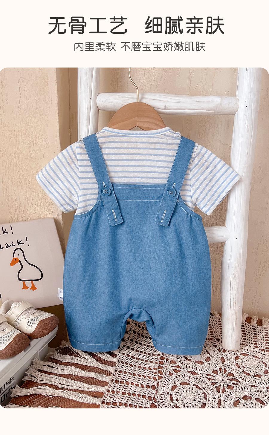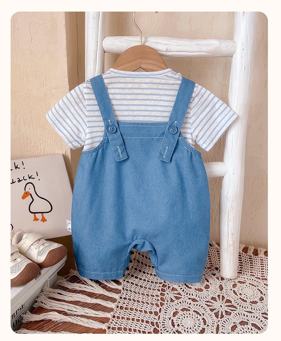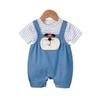 Macacão de verão para bebê menino desenho animado urso super fofo calças com alça envoltório roupas largas listradas estilosas macacão de manga curta