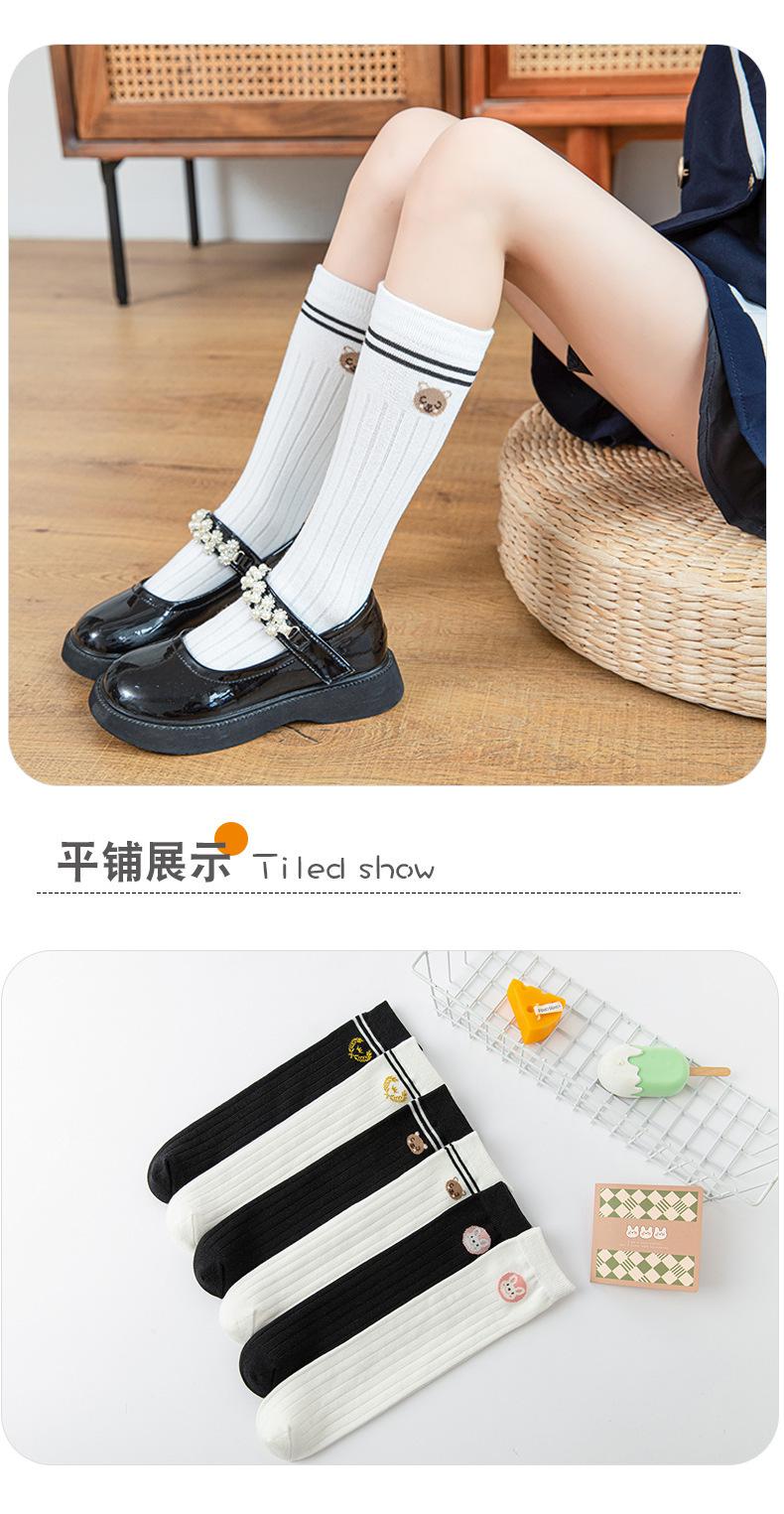 Compre Meias brancas com pelo para meninas, primavera e outono, meias infantis de cano médio, coelho, duas barras, meias de cano longo para meninas, outono no atacado no Joom.pro