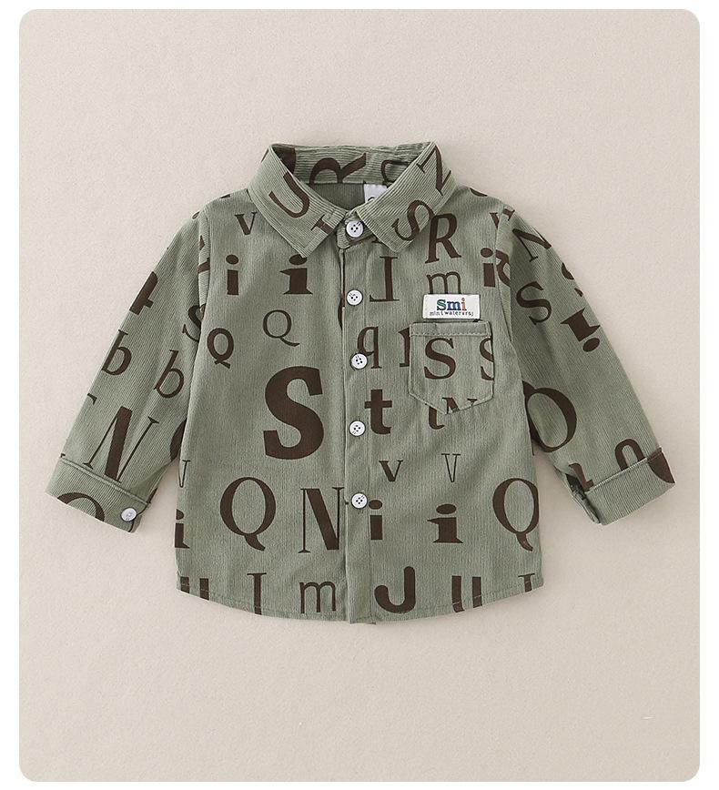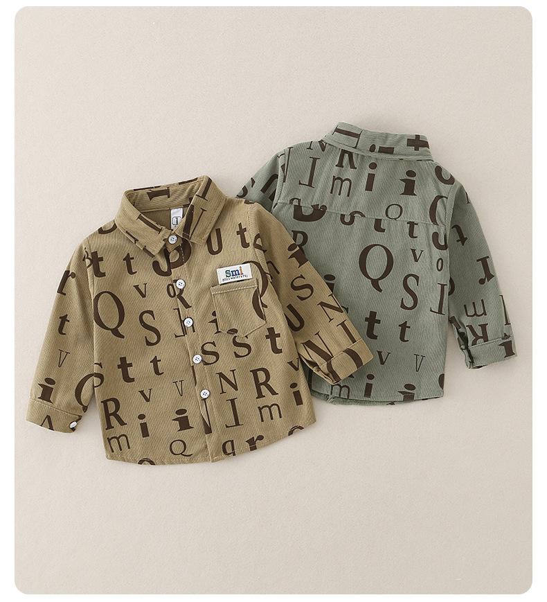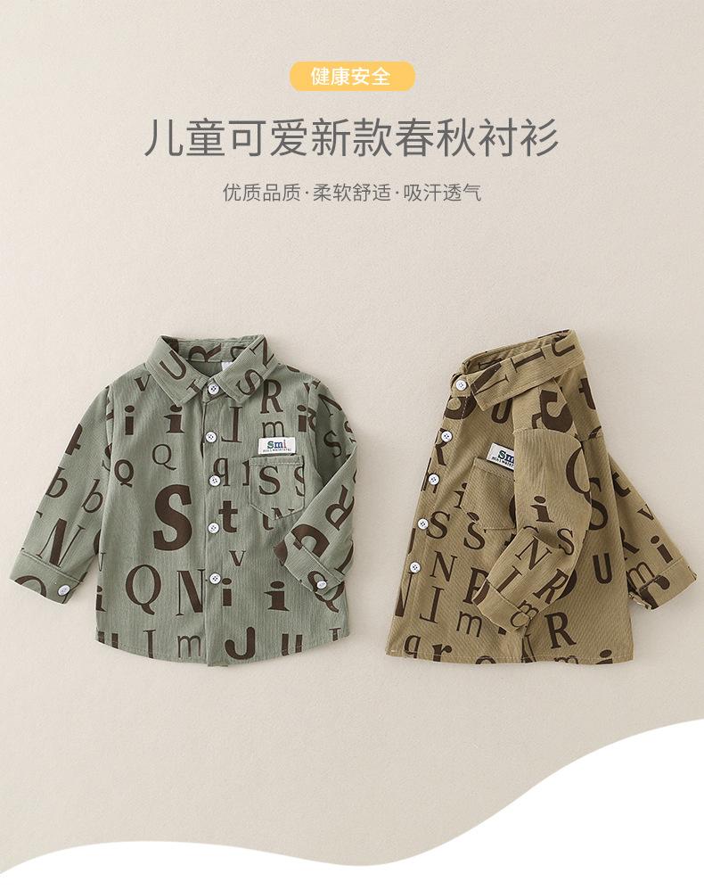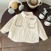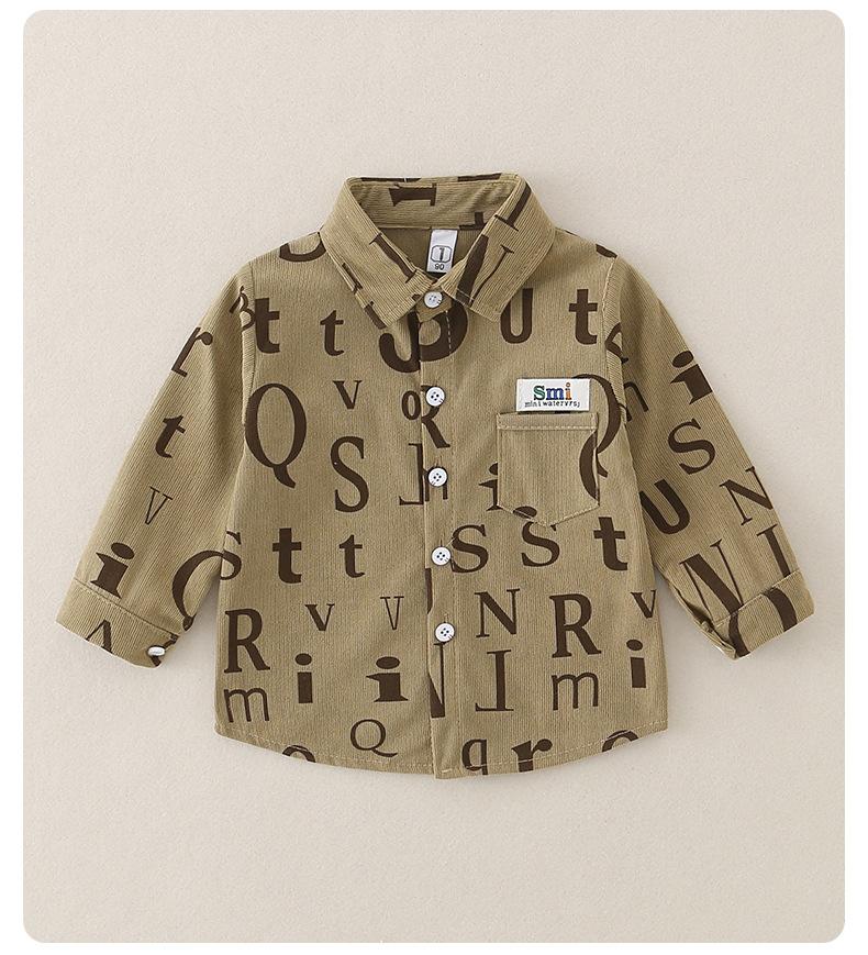 Casaco Camisa Novo Primavera 2025 para Meninos Primavera Manga Longa Novo Bebê Primavera e Outono Estilo Ocidental Top Infantil