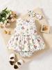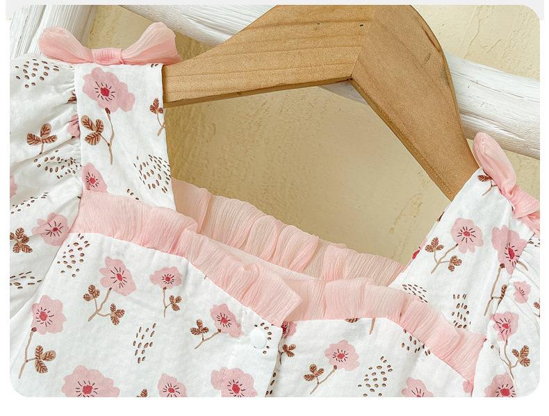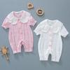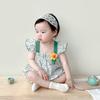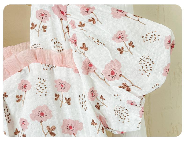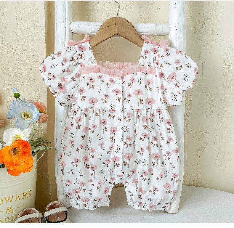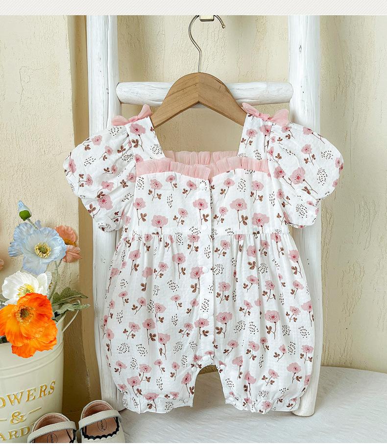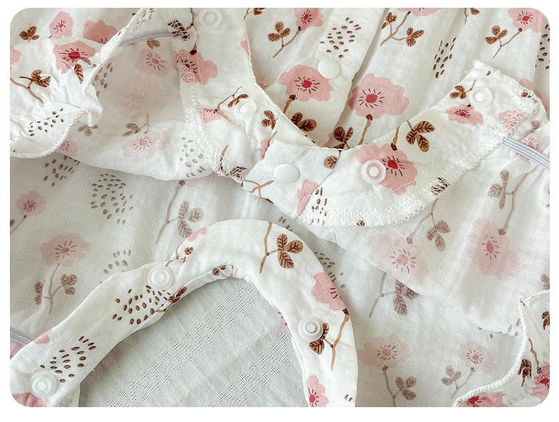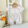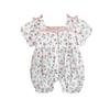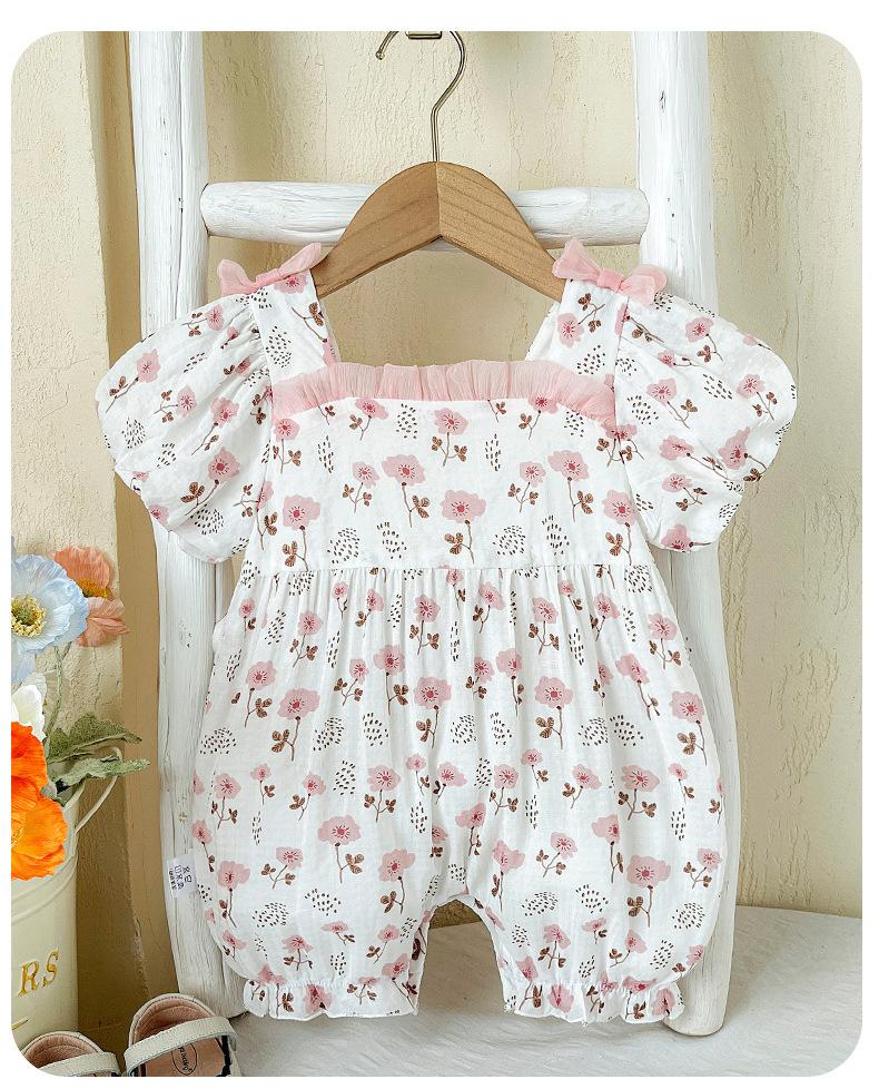 Macacão de Verão de Manga Curta para Bebê Algodão Puro Fino Floral Fofo Bebê Menina Passeio de Verão Macacão de Princesa
