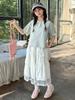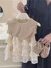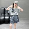 Conjunto de duas peças com saia de bolo de renda para meninas, verão 2025, novo estilo, conjunto de duas peças com saia estilosa para meninas