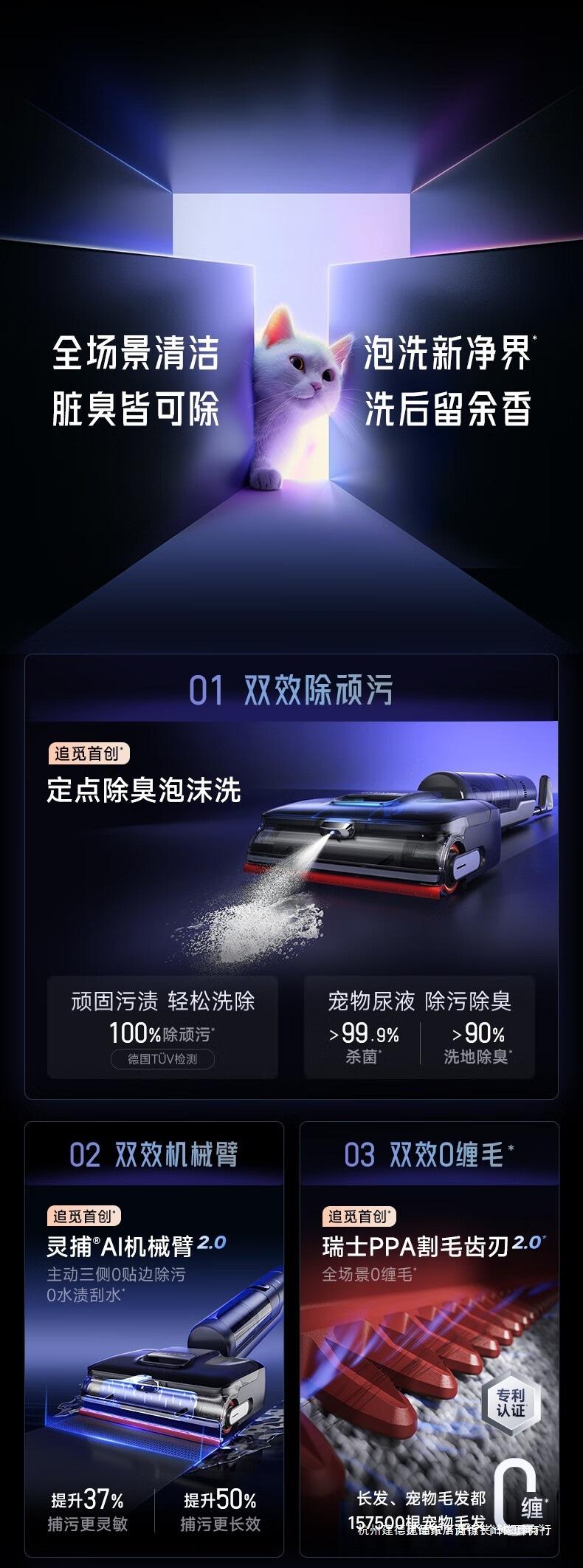 Procurando DreamT50 Ultra braço mecânico de espuma para lavagem dos sonhos, aspirador integrado com sucção e arrasto deitado, limpeza automática