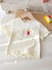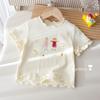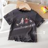 Camiseta de verão para meninas, manga curta, estilo coreano, estampa de desenho animado, babados, meia manga, roupas da moda de verão
