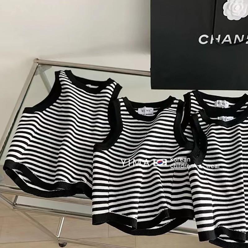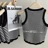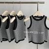 Meninos e Meninas 2024 Verão Novo Colete Listrado Sem Mangas Estilo Western Infantil Fino Infantil Gola Redonda Top Camiseta