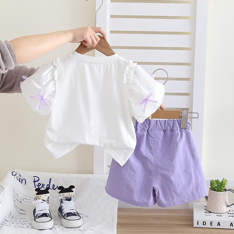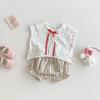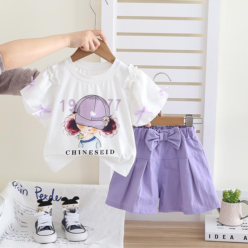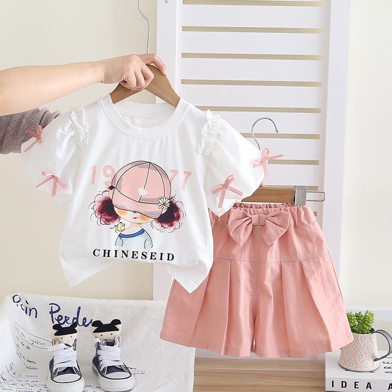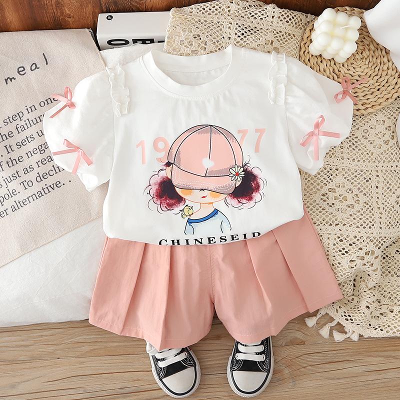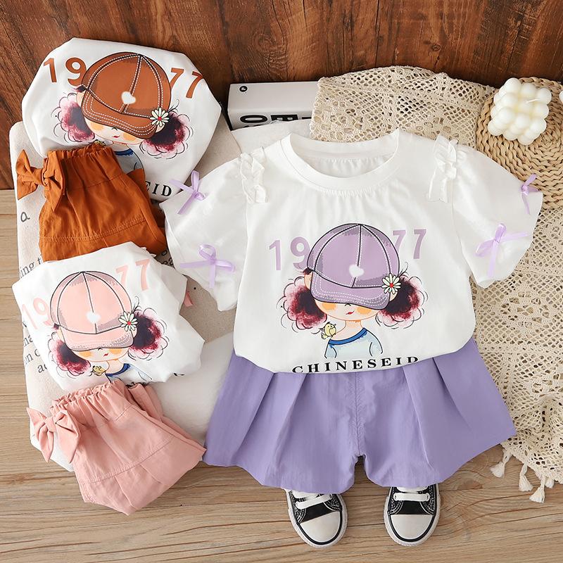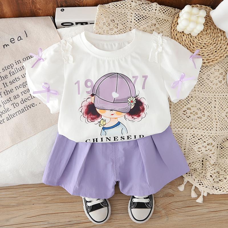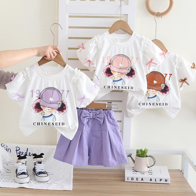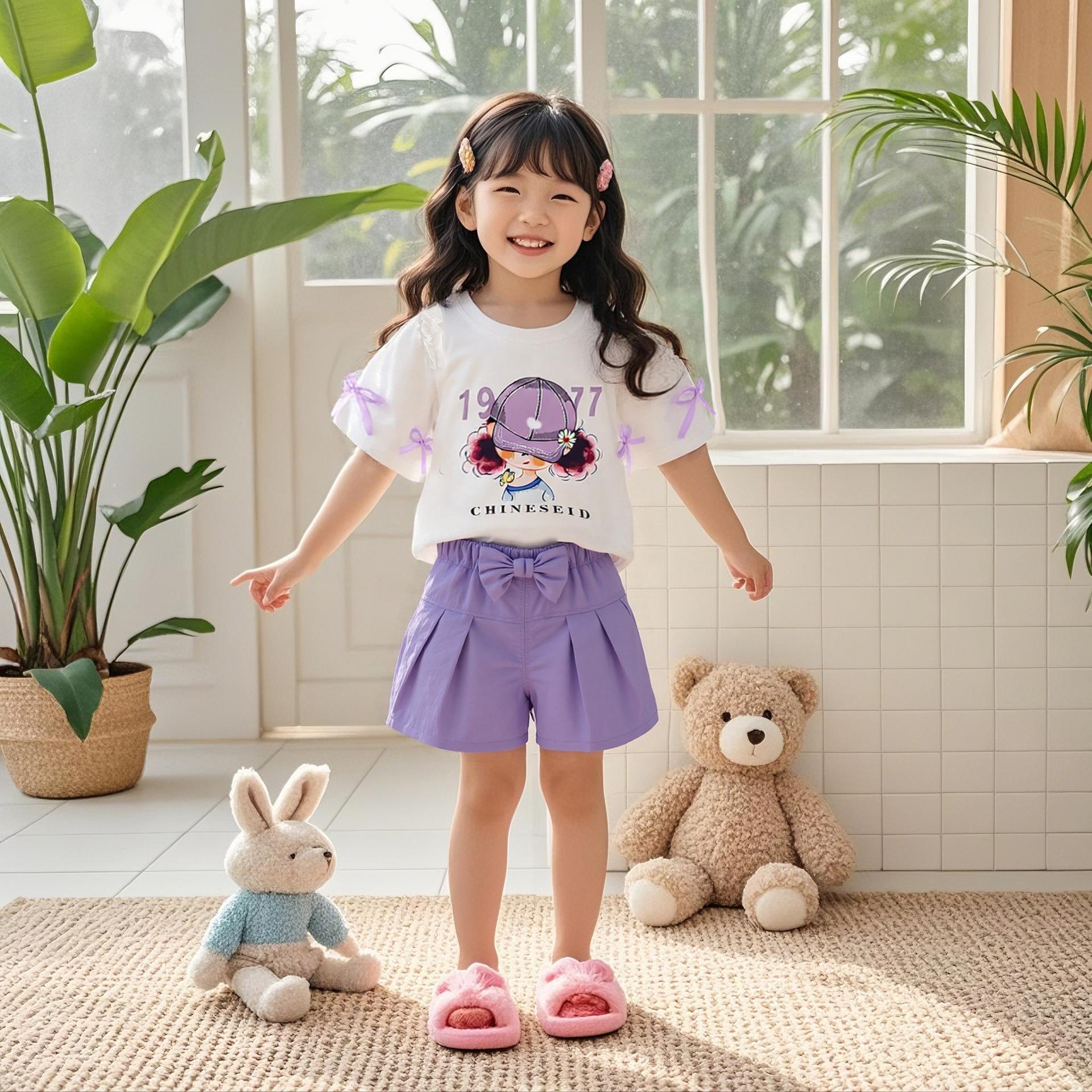 Roupas de Verão da Moda para Menina 2025 Nova Camiseta Fina de Manga Curta para Bebê Menina Conjunto de Culotes para Menina Atacado