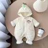 Inverno Bebê com Capuz Bonito Desenho Animado Bebê Forrado com Lã Casaco Grosso Estilo Girassol Chapéu de Algodão Grosso