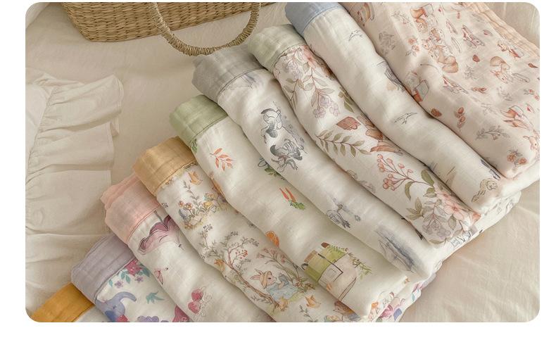 Cobertor de Gaze de Algodão de Bambu Lado Largo para Ar Condicionado para Quatro Estações Universal Respirável Pano para Enrolar Recém-Nascido Toalha de Banho Cobertor de Quatro Camadas Cobertor