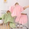 Terno bordado de renda para meninas, nova moda verão 2025, colete sem mangas estiloso para meninas, conjunto de duas peças