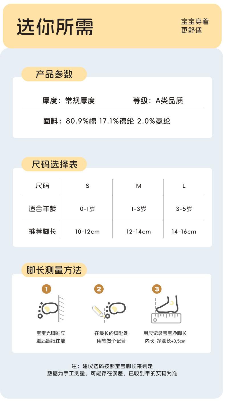 S (0-1 years old) recommended foot length 10-12cm, M (1-3 years old) recommended foot length 12-14cm, L (3-5 y...