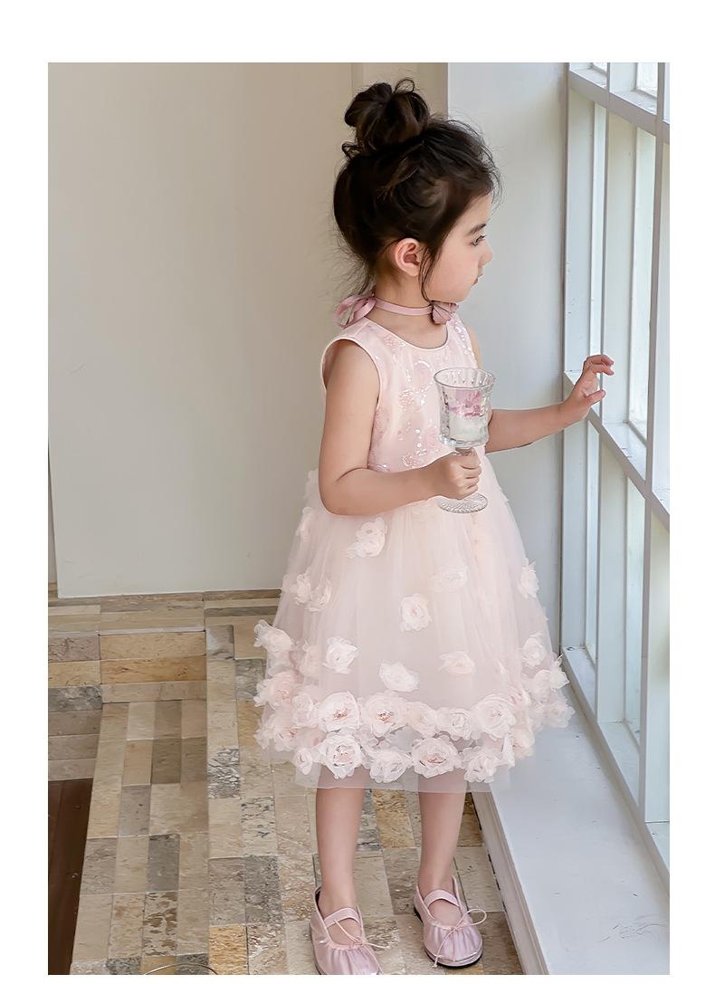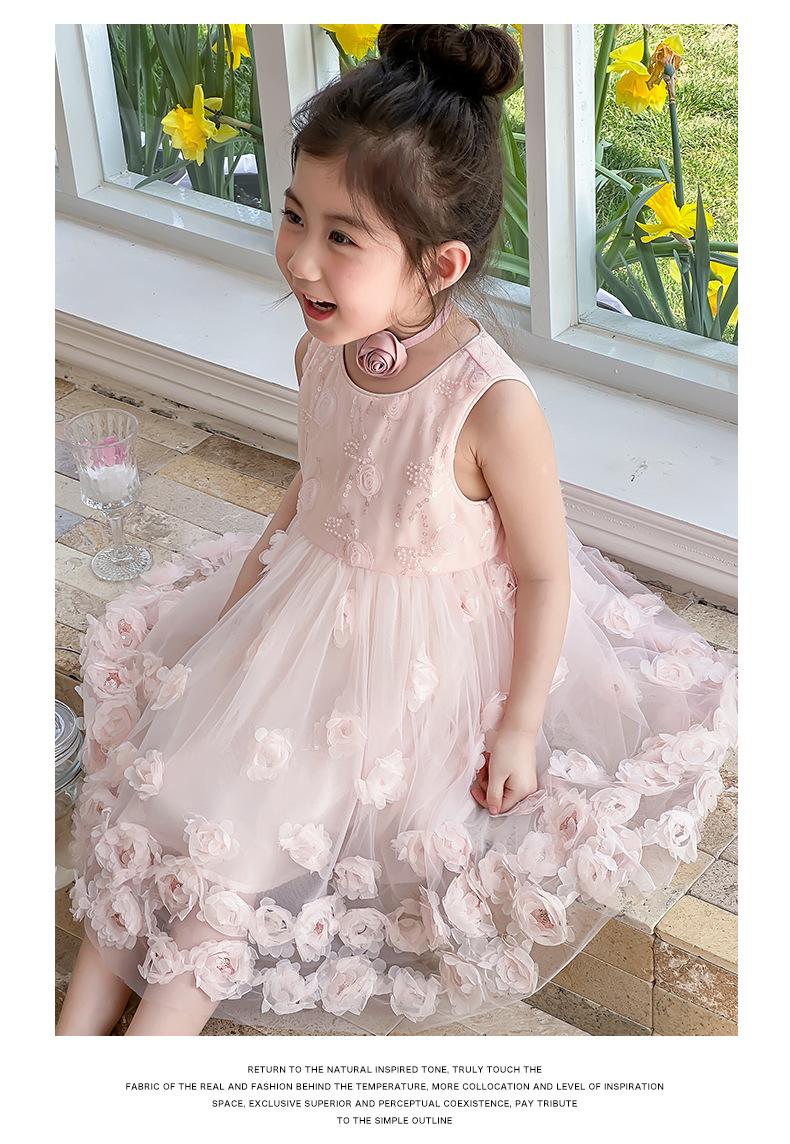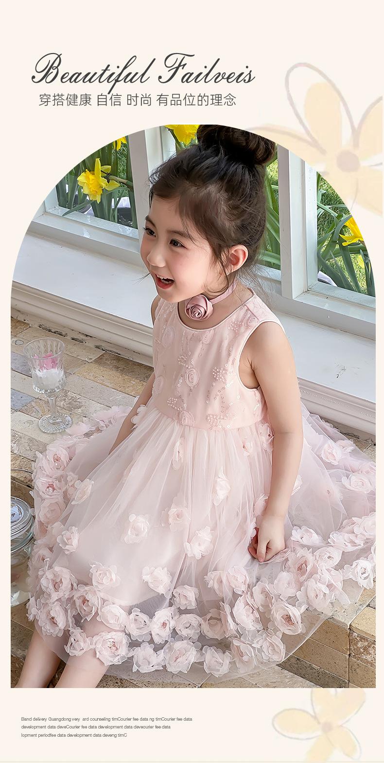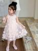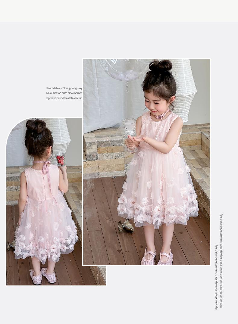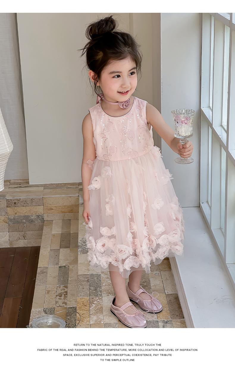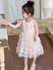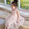 Vestido de Princesa para Meninas Verão Novo Vestido de Bebê Flor de Malha Sem Mangas Bordado Lantejoulas Vestido de Aniversário