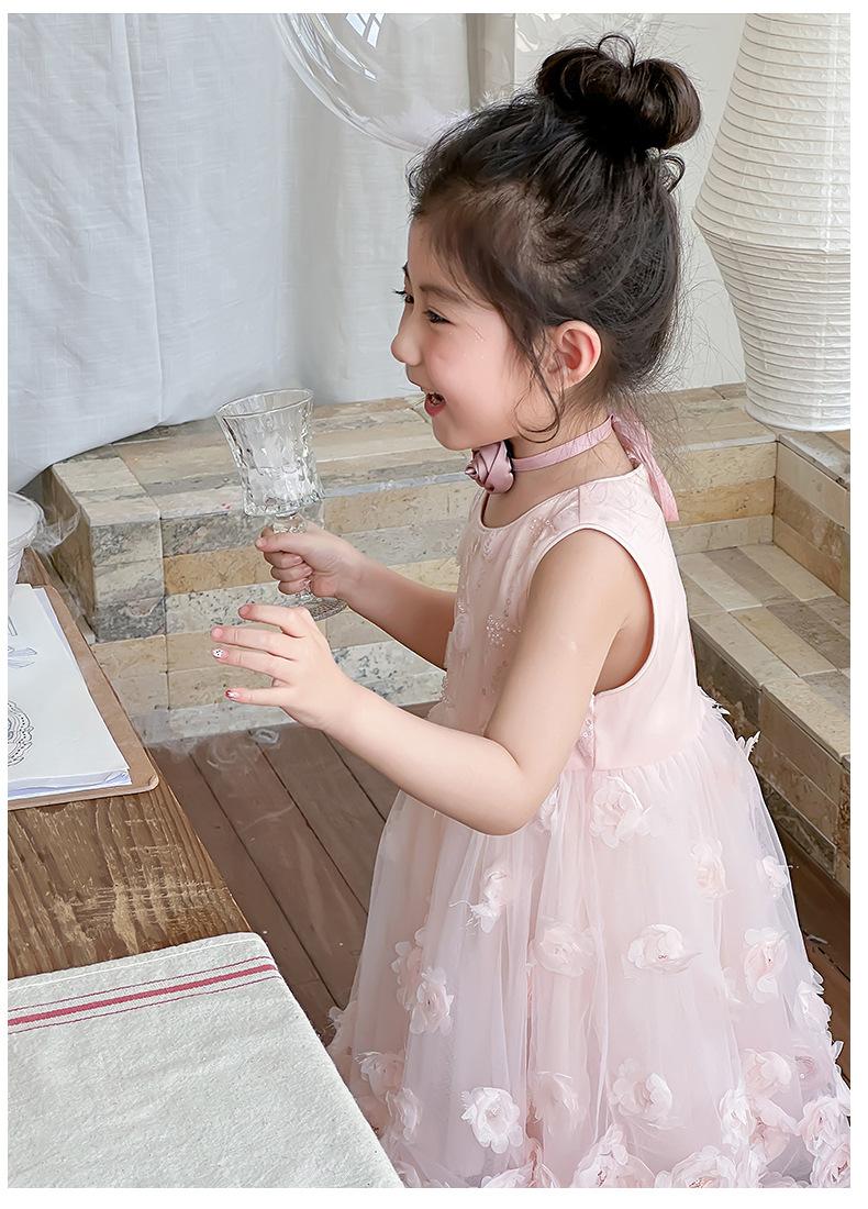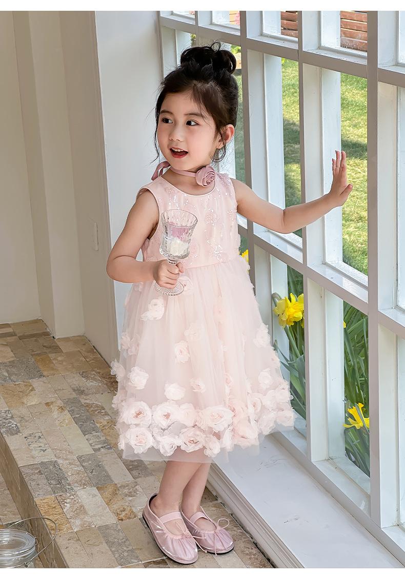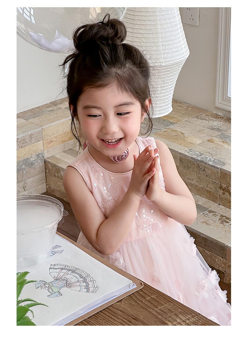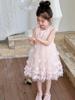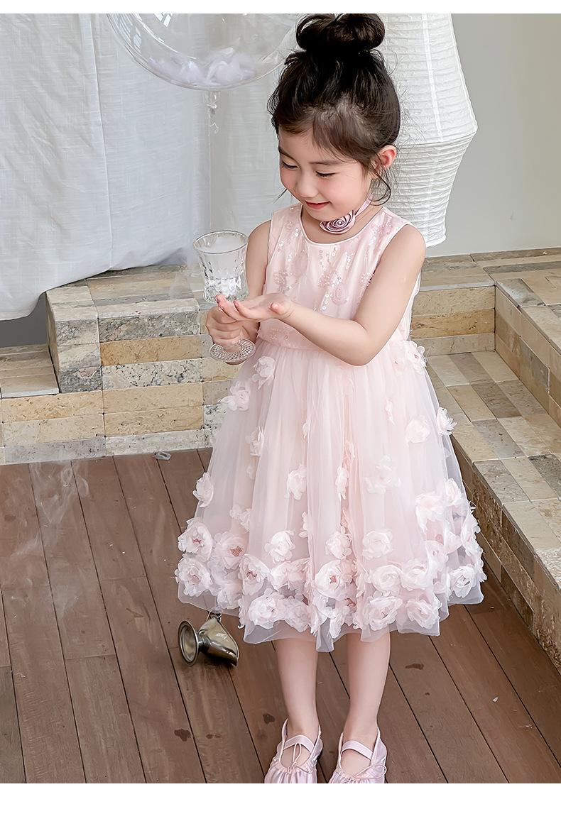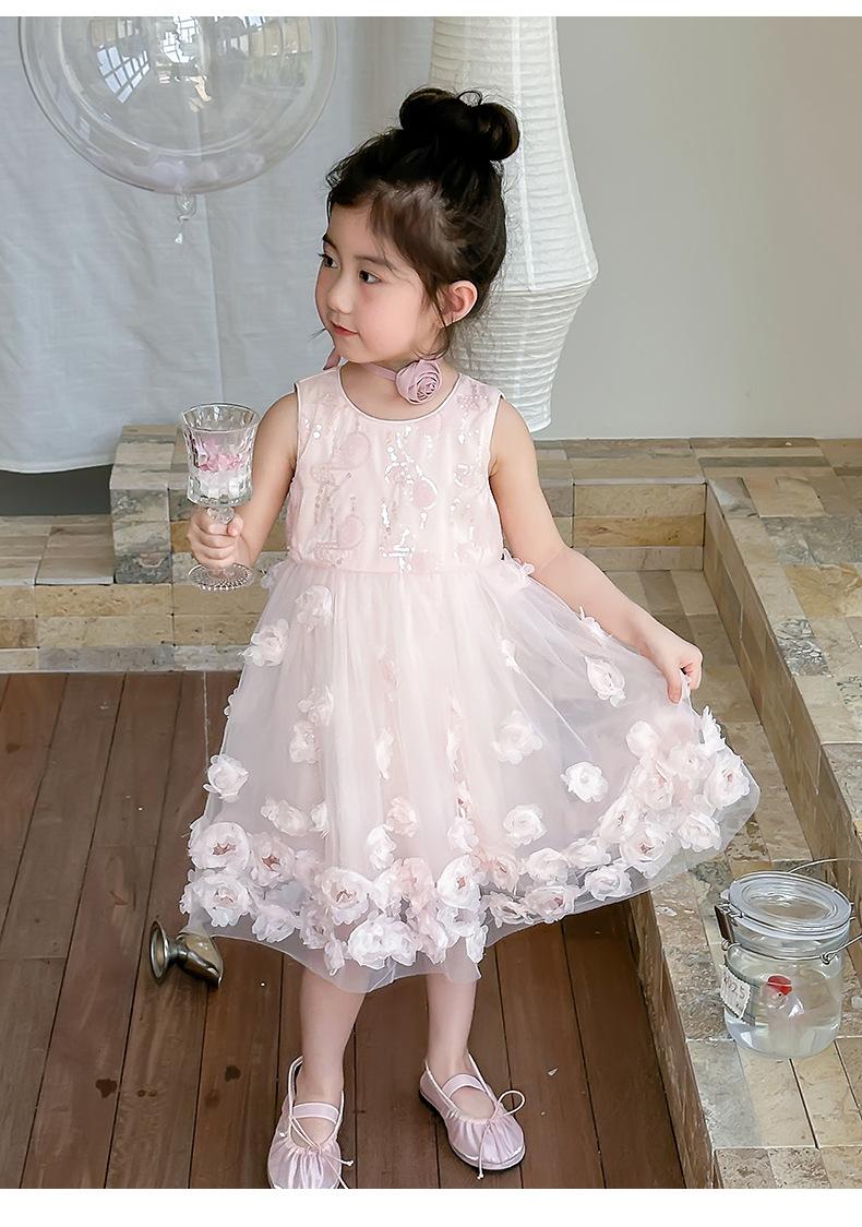 Vestido de Princesa para Meninas Verão Novo Vestido de Bebê Flor de Malha Sem Mangas Bordado Lantejoulas Vestido de Aniversário
