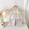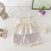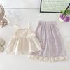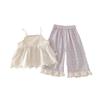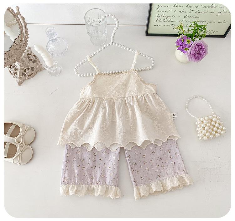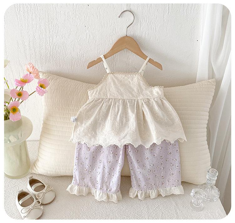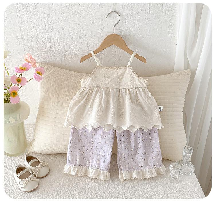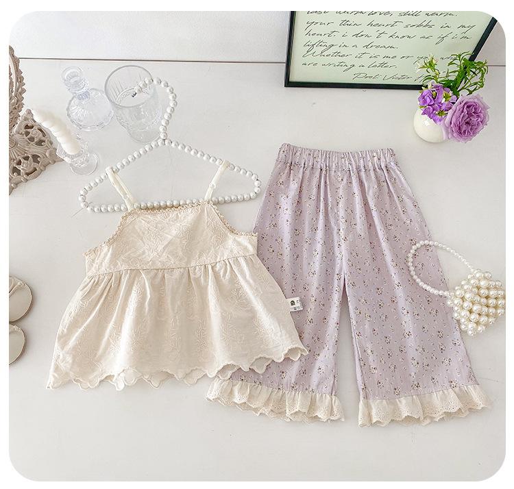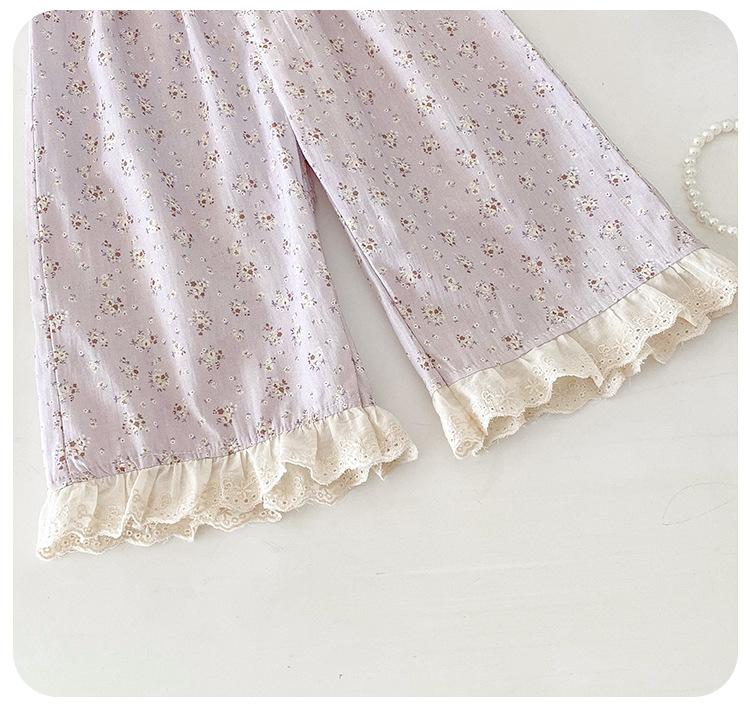 Roupas de bebê estilo coreano, roupas de verão, conjunto fofo para meninas, macacão floral, calças divididas, conjunto fino de duas peças