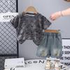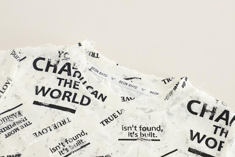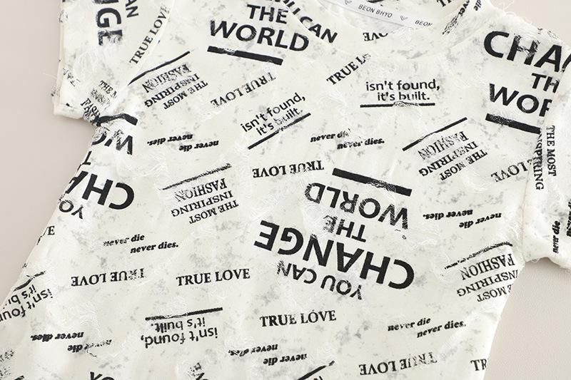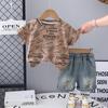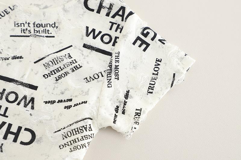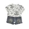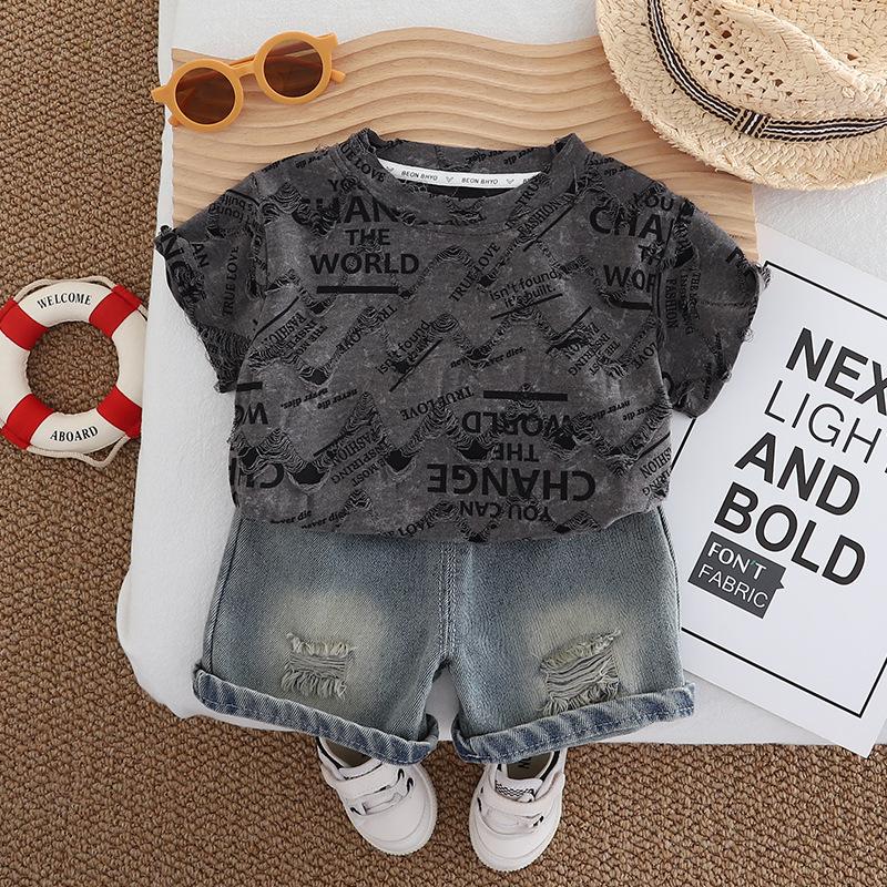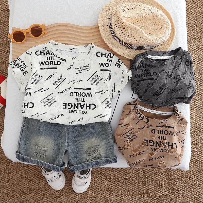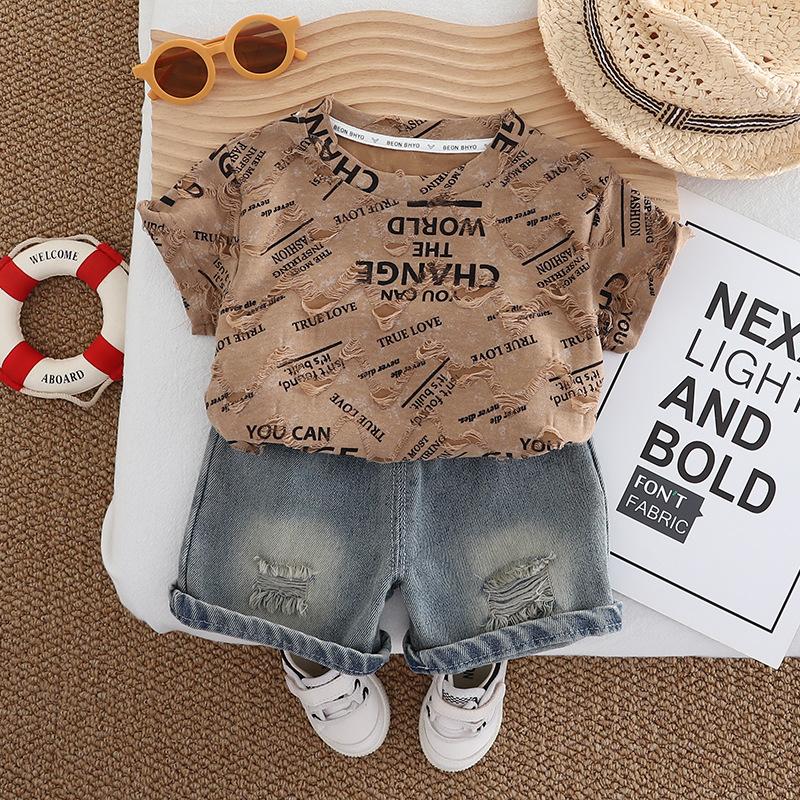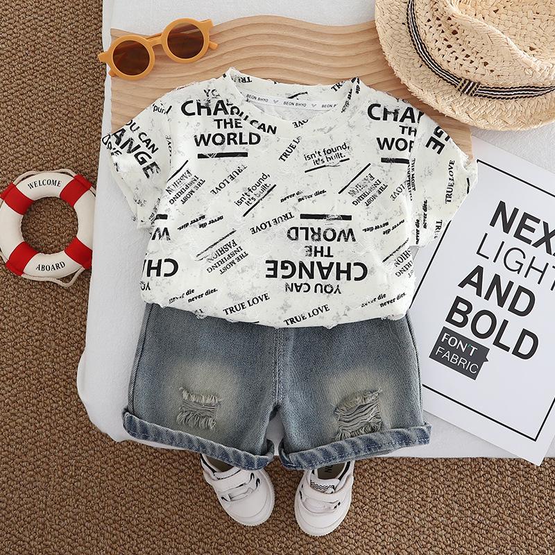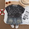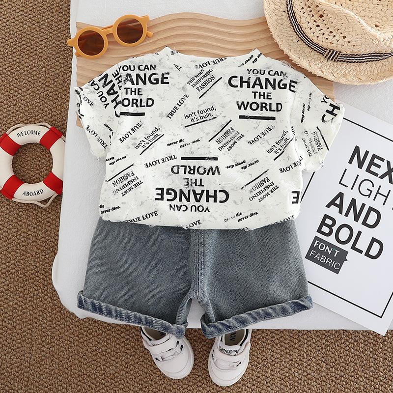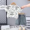Terno infantil de manga curta com letras, verão 2025, novo conjunto infantil de duas peças, 1 a 5 anos, terno infantil