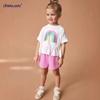 Roupa infantil 2025 verão infantil novo preto estampa cachorrinho desenho animado meninas camiseta manga curta top shorts terno