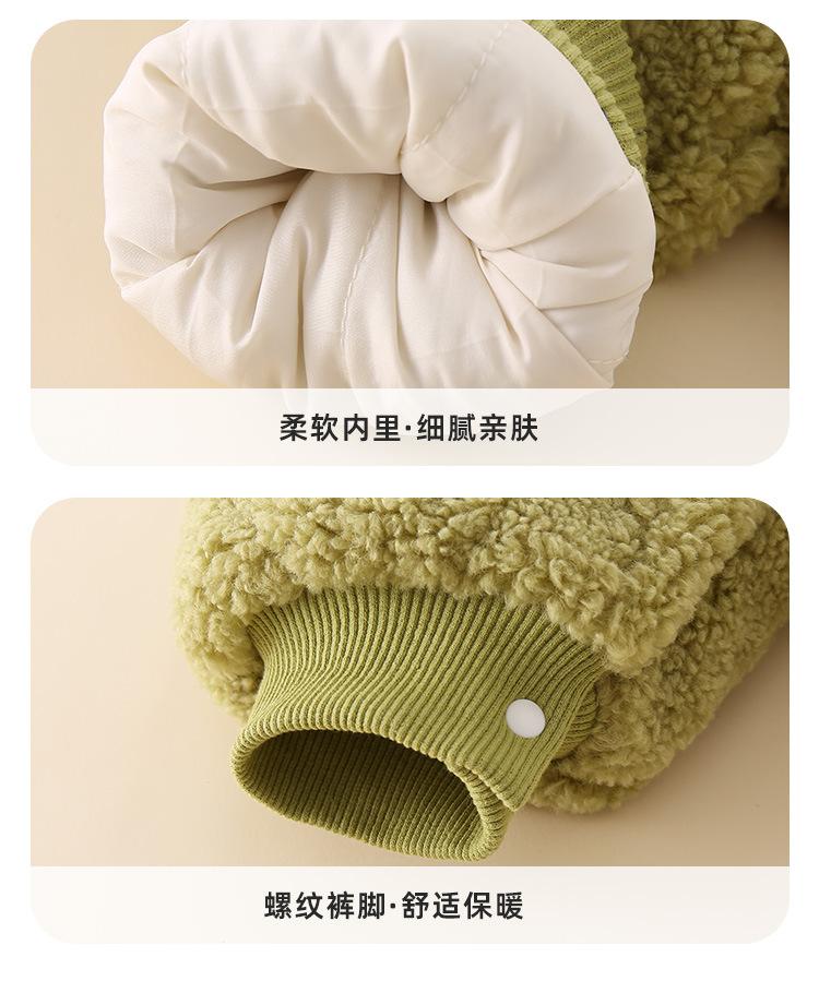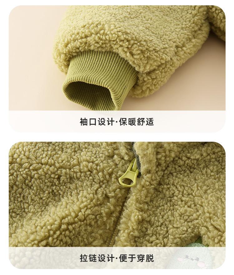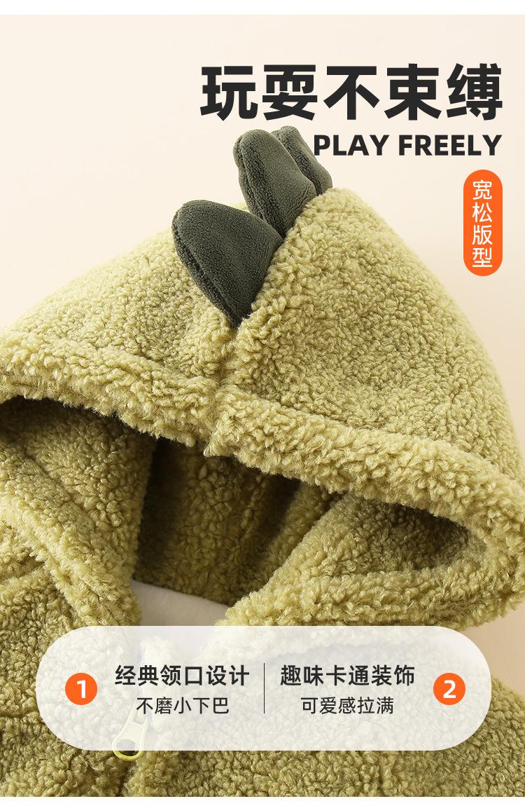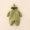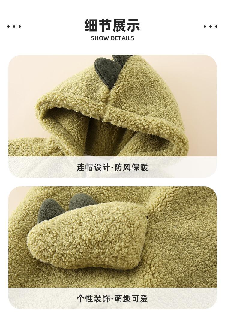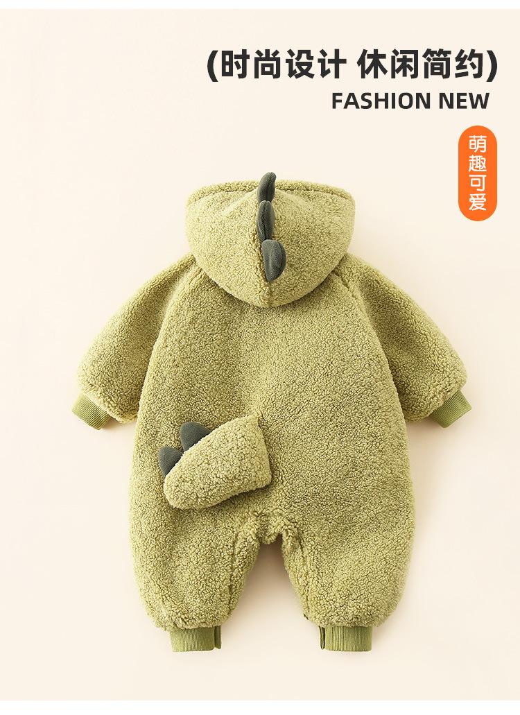 Macacão de outono e inverno para bebês 2024, novo macacão masculino de inverno com forro de lã, pequeno dinossauro de pelúcia, com capuz, para escalada
