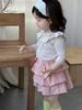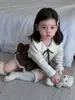 Roupas Infantis Outono 2025 Novas Roupas de Outono para Bebê Roupas Infantis Estilo Coreano Roupas para Meninas Camisa Baby Doll Saia Curta Conjunto