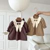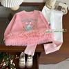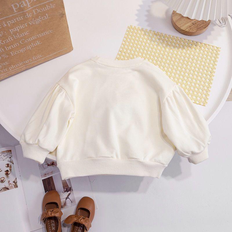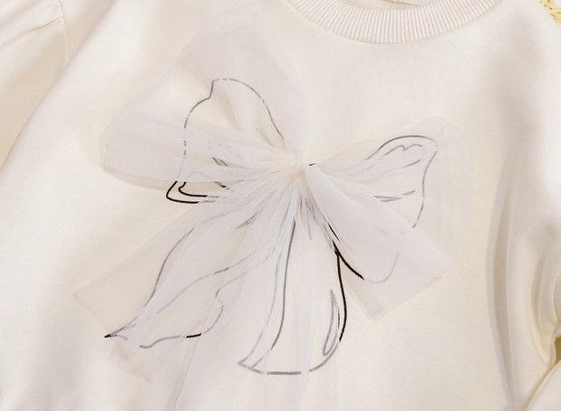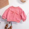 Moletom fofo e doce para bebês meninas, primavera e outono de 2025, com laço tridimensional, moda estilo ocidental, manga comprida