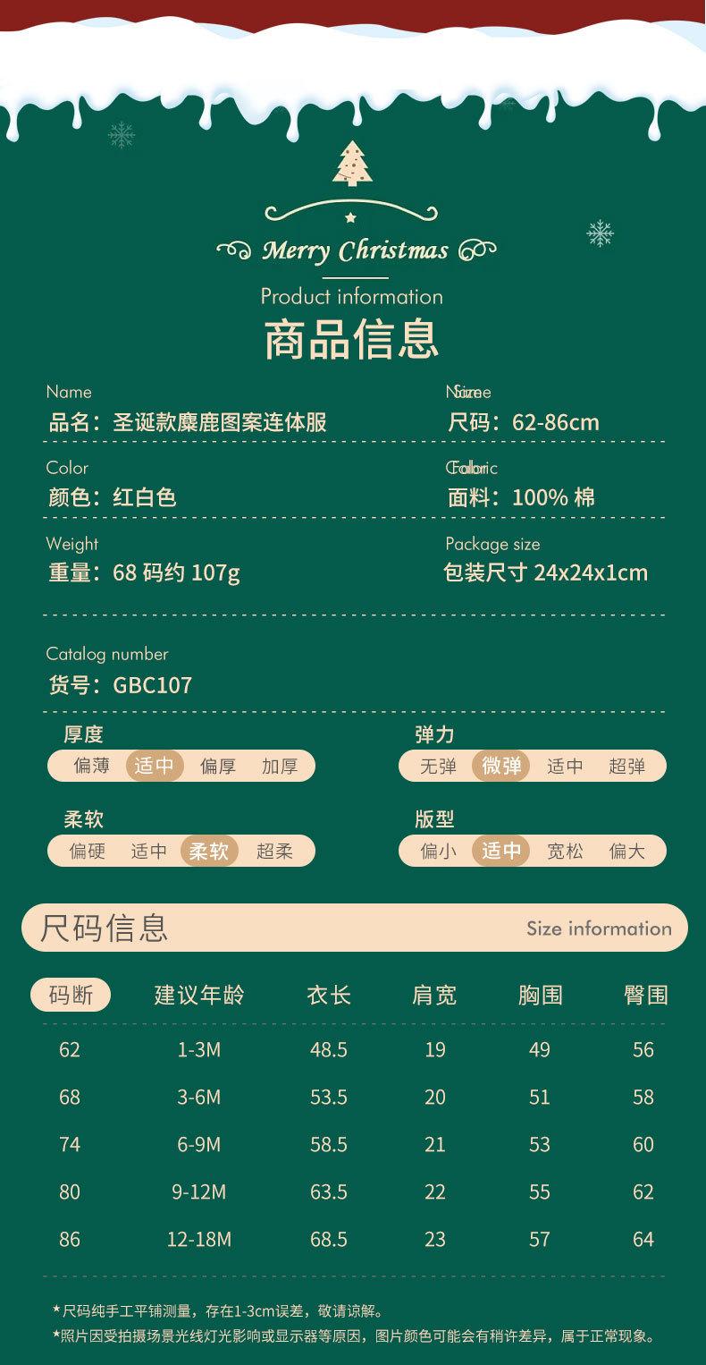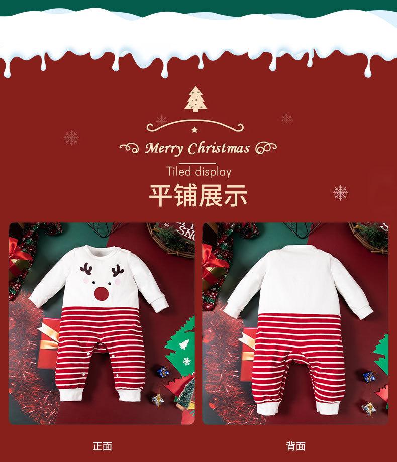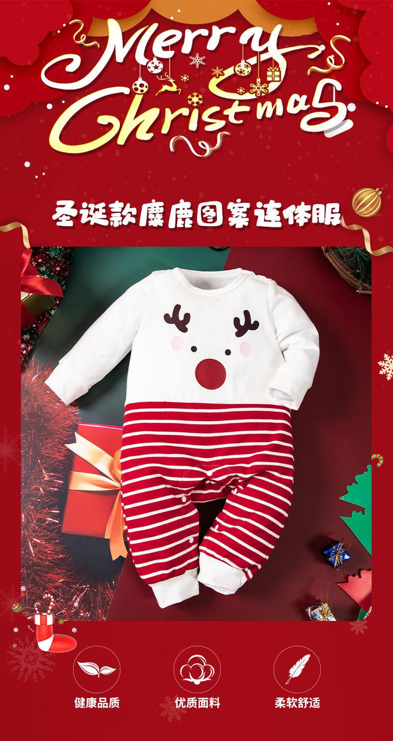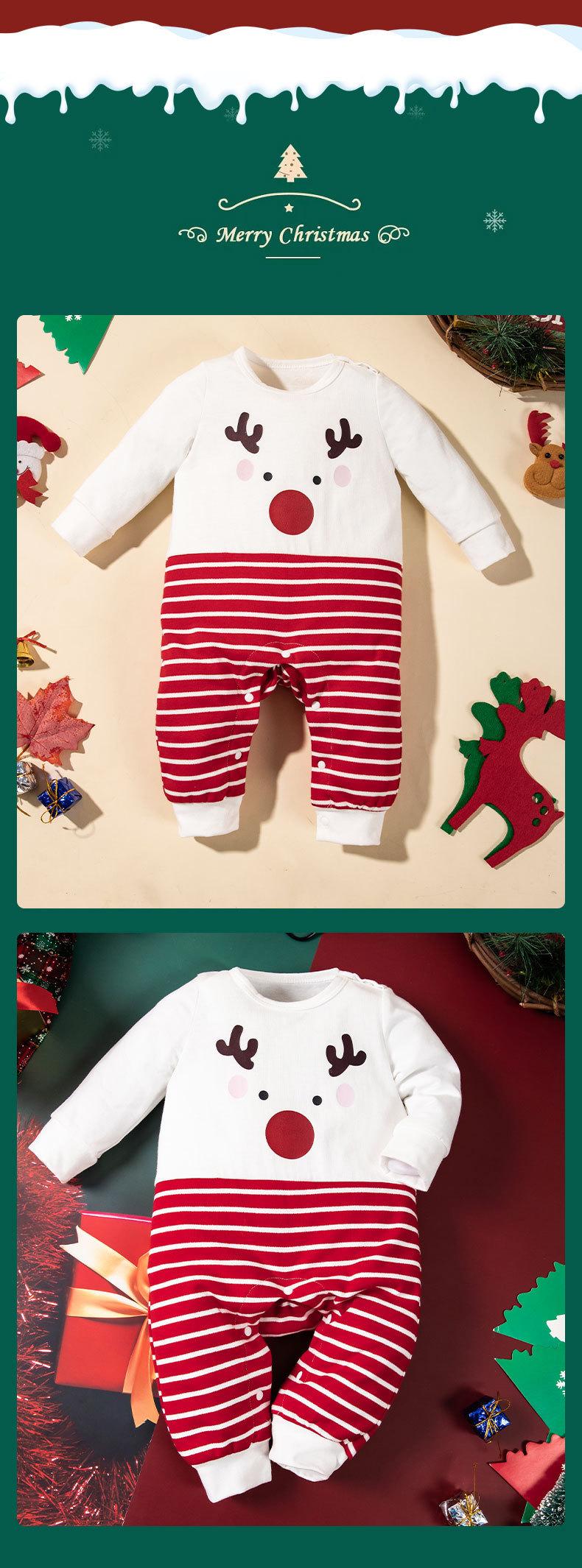 Macacão de Algodão com Patch de Alce de Algodão de Manga Longa com Gola Redonda e Bebês da Amazon Estilo Natal