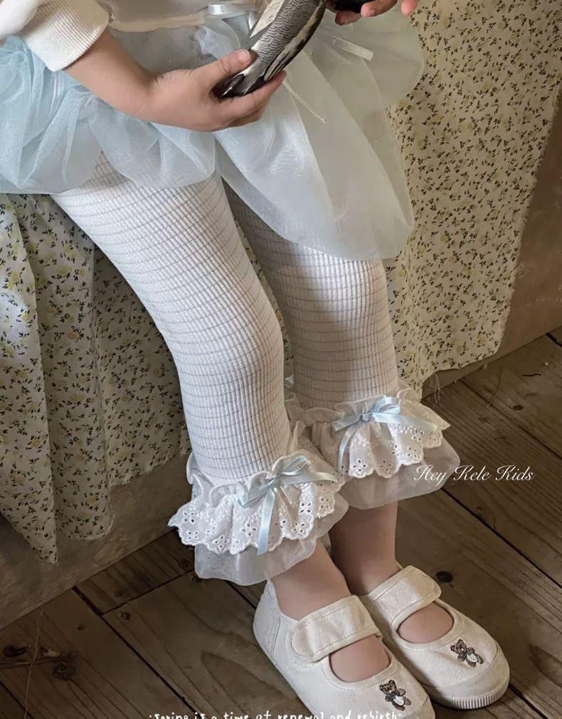 Calças leggings femininas infantis de primavera e outono, estilo ocidental, para bebês, personalidade infantil, marca de moda, renda doce, malha, seção borboleta, calças curtas