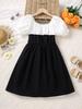 Vestido de verão para meninas, novo vestido infantil estilo coreano com laço, estilo ocidental, vestido de princesa com costura para meninas, vestido de verão