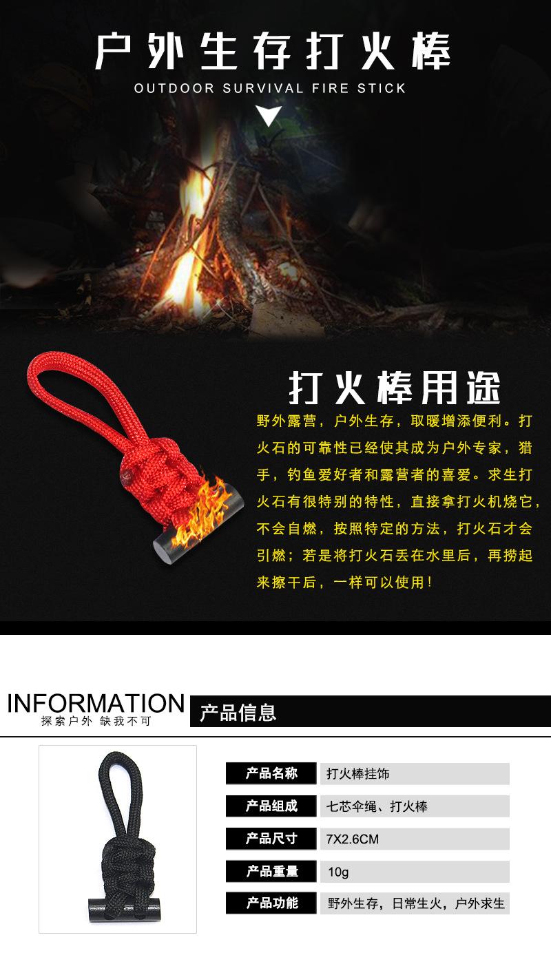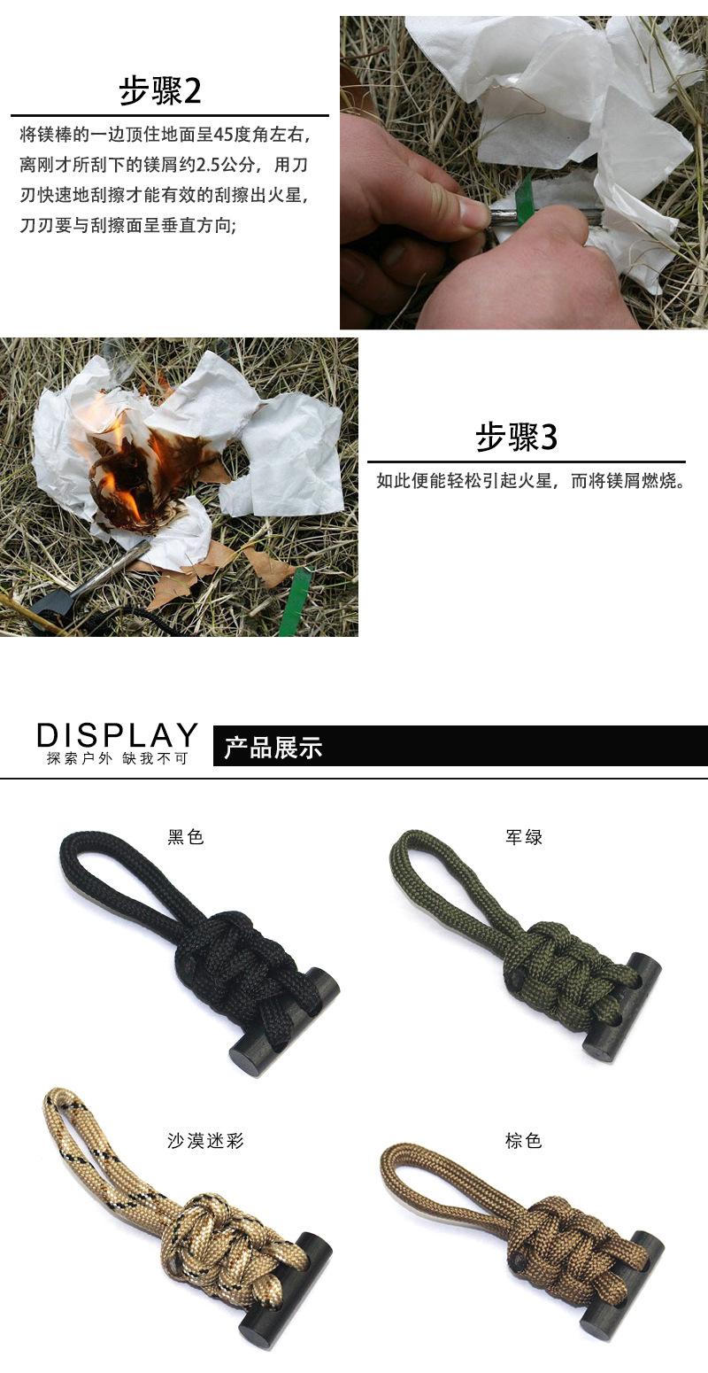 Fabricantes de vendas diretas de chaveiro de sobrevivência ao ar livre, sete núcleos de corda trançada, chaveiro de sílex à prova d'água para proteção contra incêndio ao ar livre