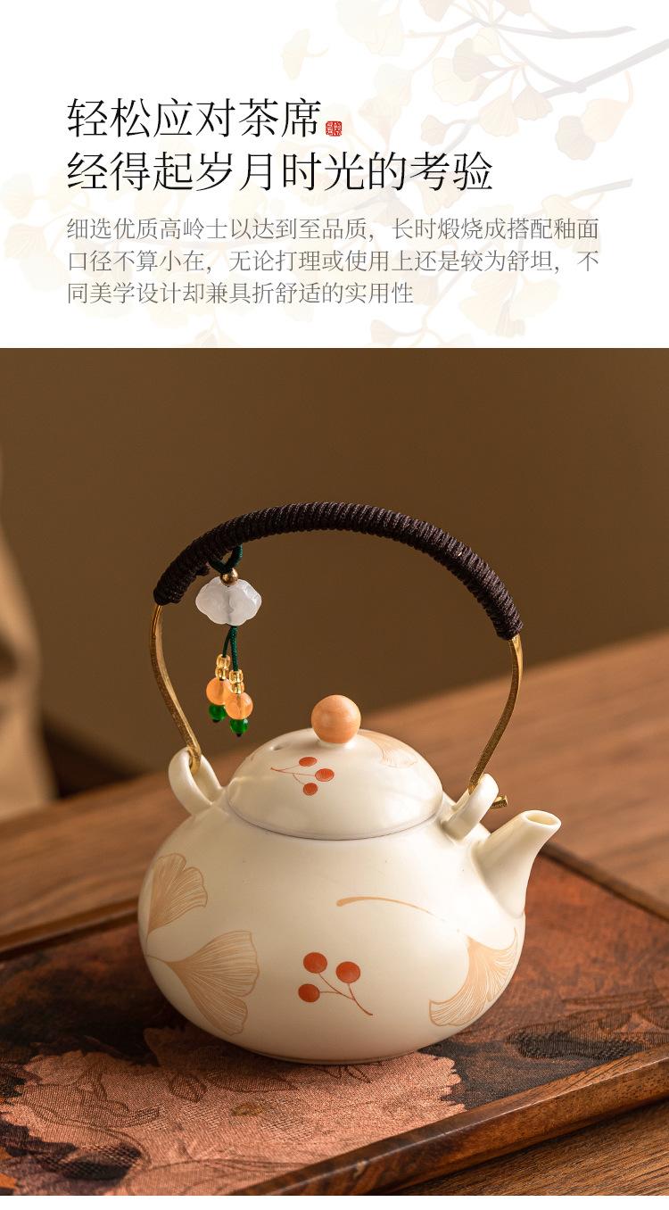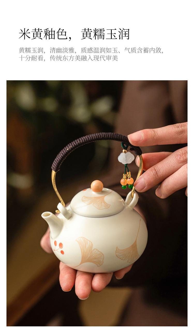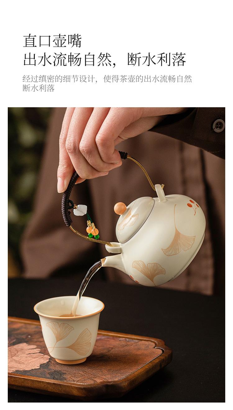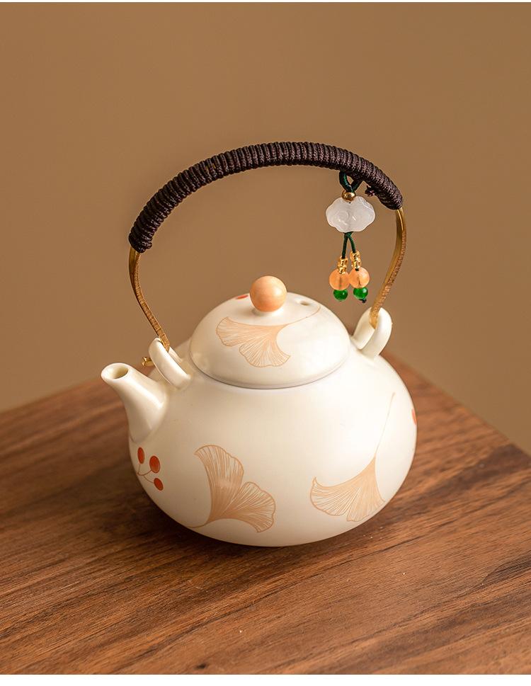 Bule de cerâmica com corda de amarrar gingko bege de fábrica, conjunto de chá kung fu com filtro, bule único, bule pequeno chinês