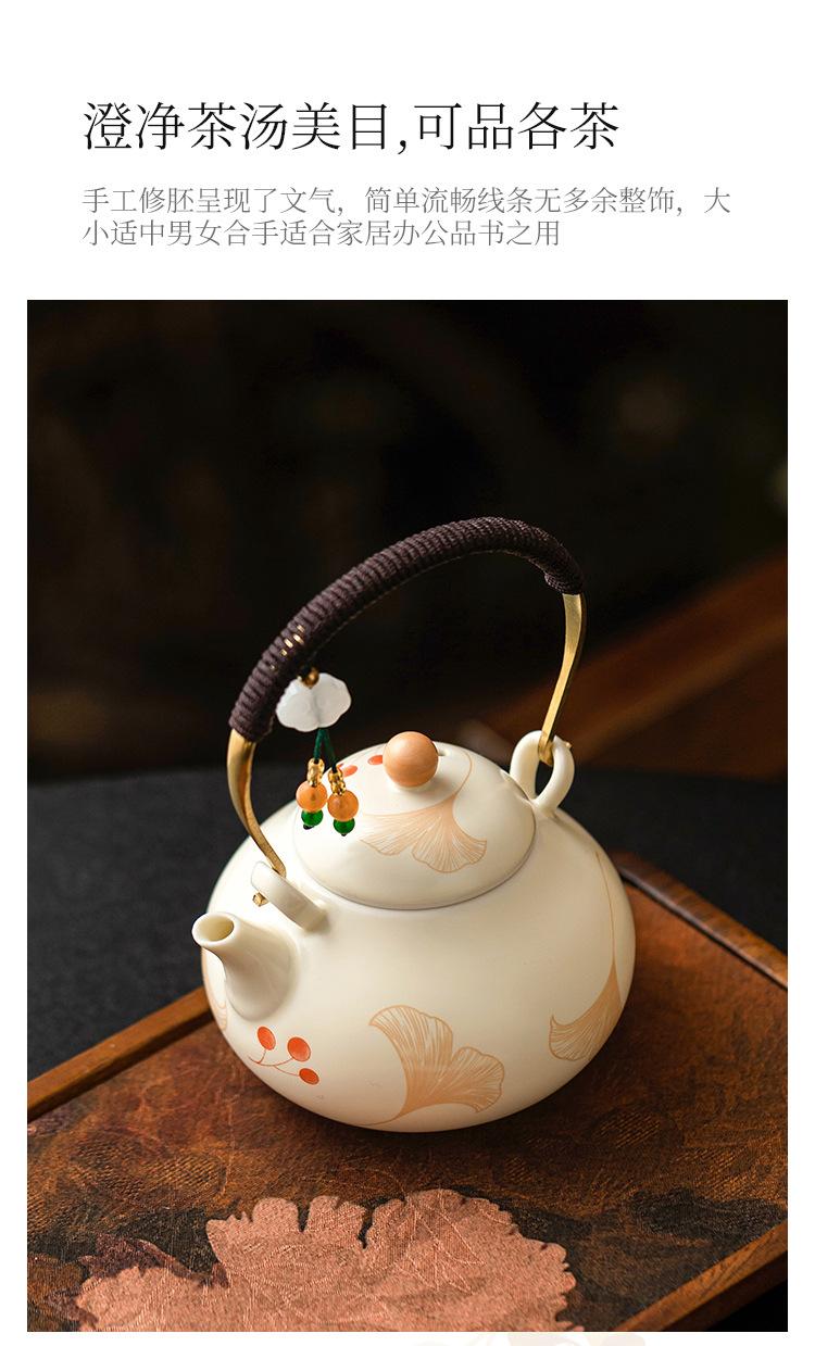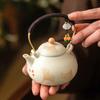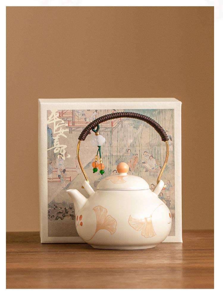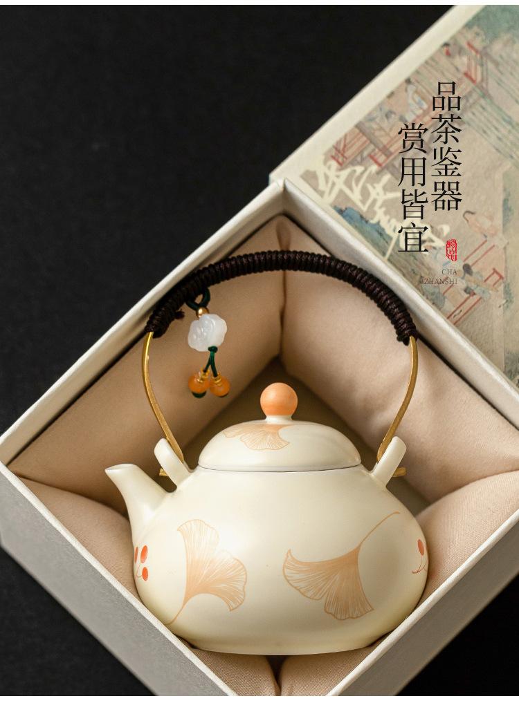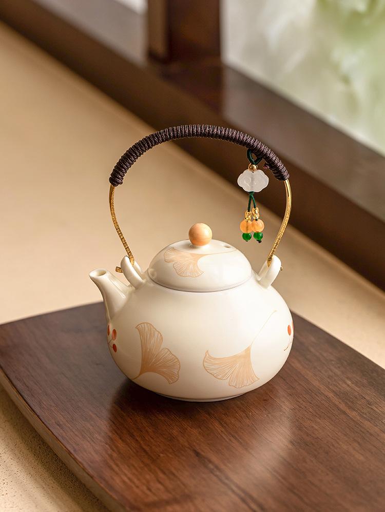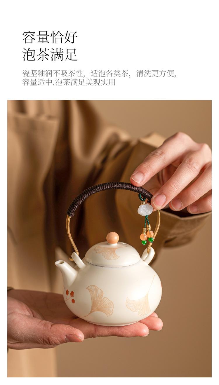 Bule de cerâmica com corda de amarrar gingko bege de fábrica, conjunto de chá kung fu com filtro, bule único, bule pequeno chinês
