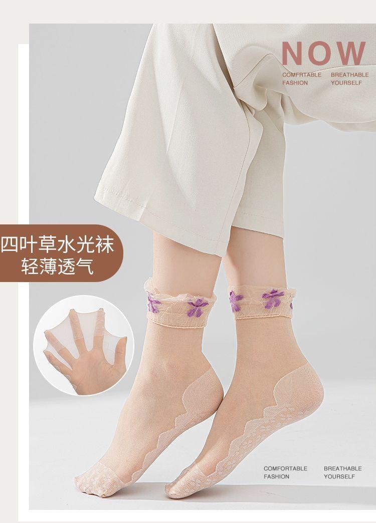 Meias de renda soltas, fundo de algodão, meias de seda antiderrapantes, meias de verão finas, meias de seda antiderrapantes, pernas de seda