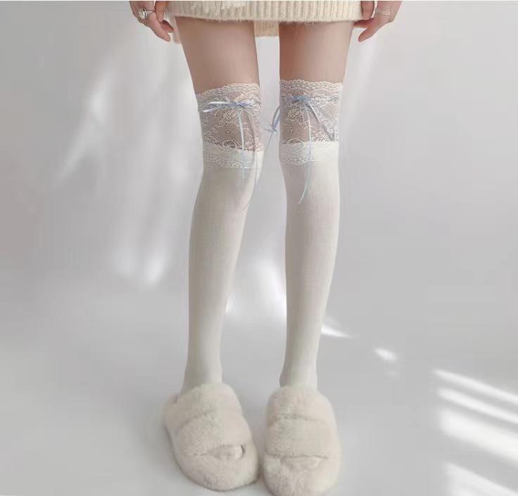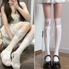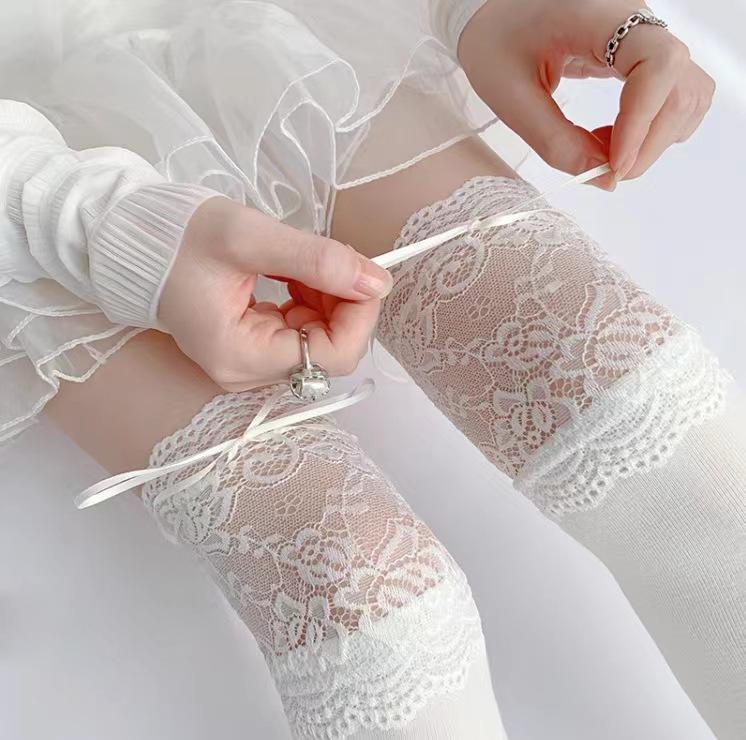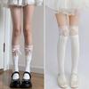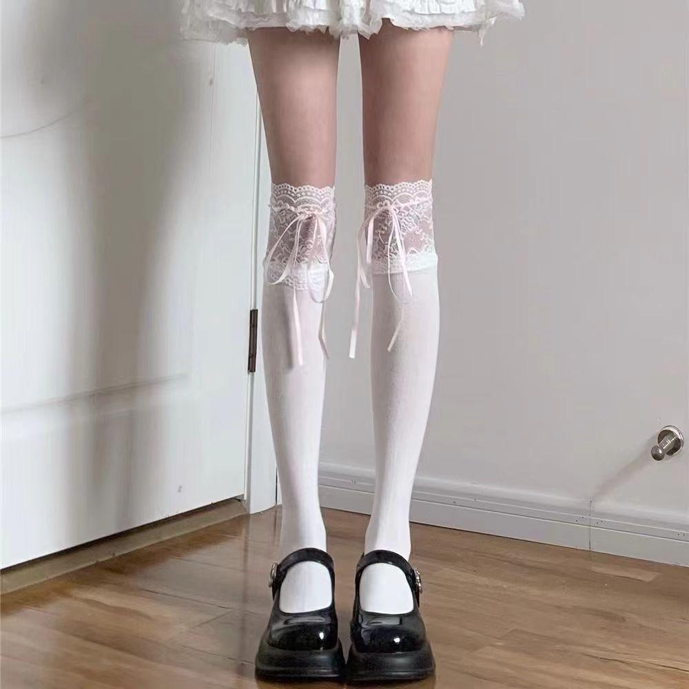 Meias Lolita Renda Acima do Joelho Meias Brancas Femininas Laço de Fita Meias de Comprimento Médio JK Outono Meias Finas para Pés