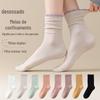 Meias Meias de Comprimento Médio Femininas de Primavera e Verão Algodão Puro Antibacteriano Respirável Meias de Algodão Sem Costura Meias Esportivas Brancas Finas de Verão para Mulheres