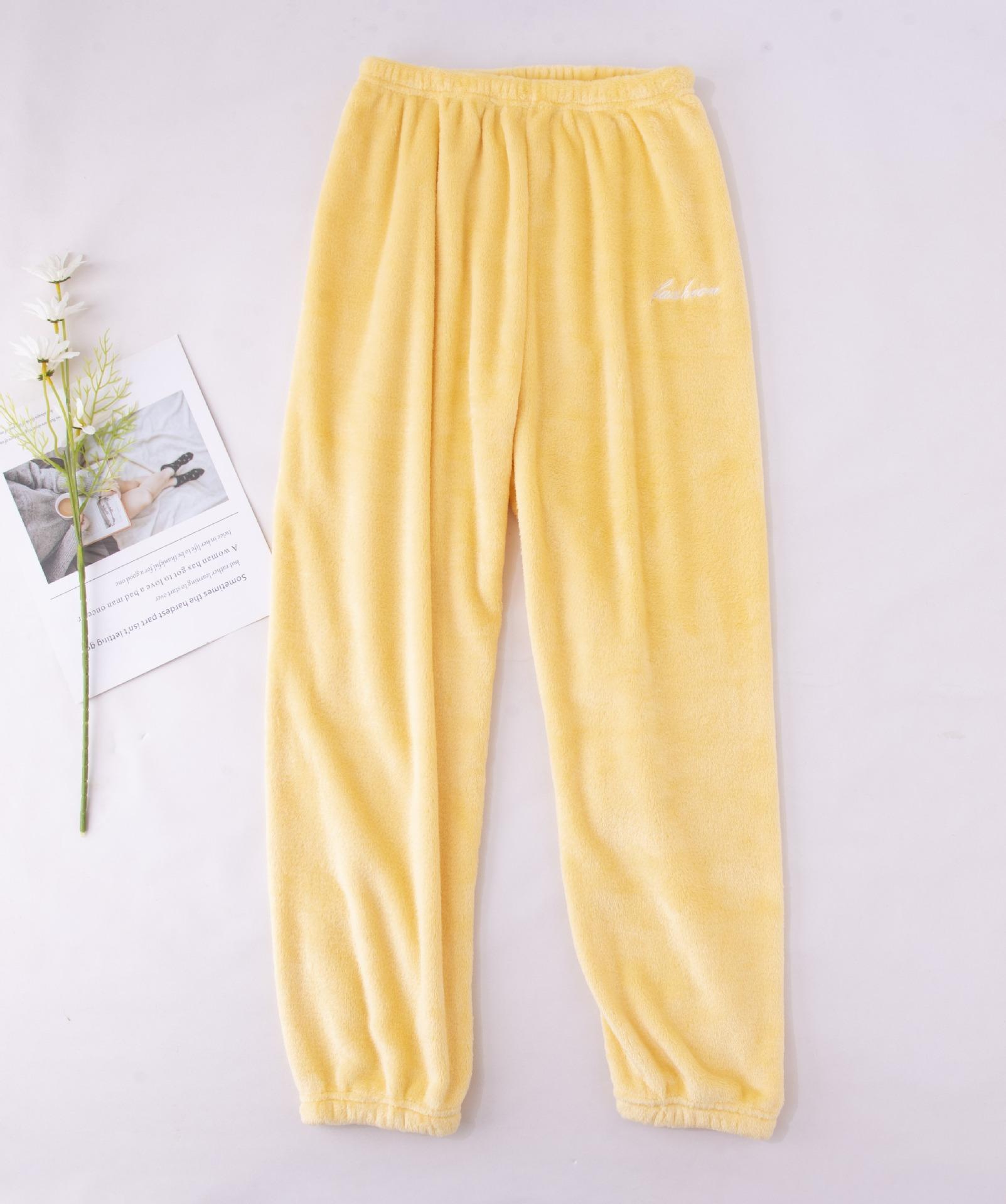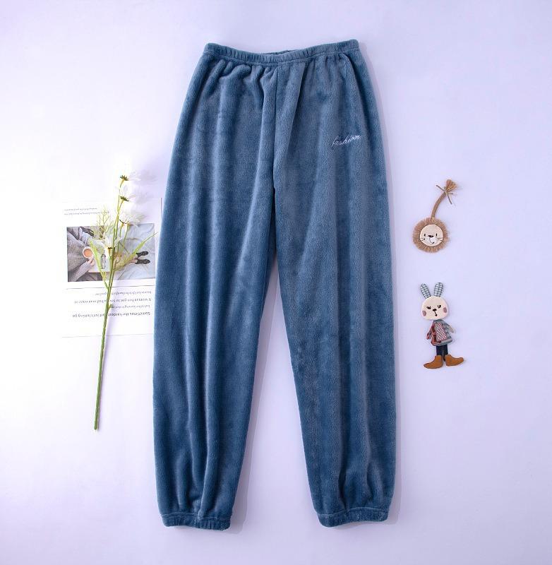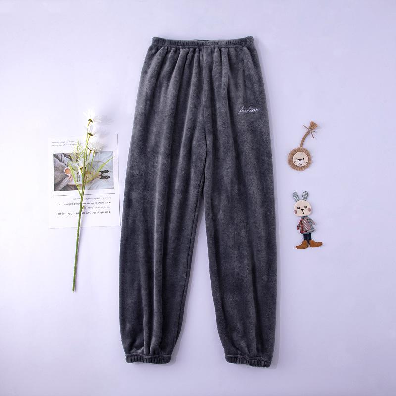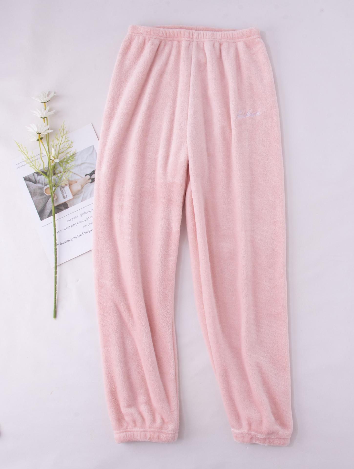 Compre Calças de Pijama de Fleece Coral Femininas de Outono e Inverno Quentes de Pelúcia Calças de Casa de Flanela Cor Sólida Simples Casual Soltas no atacado no Joom.pro