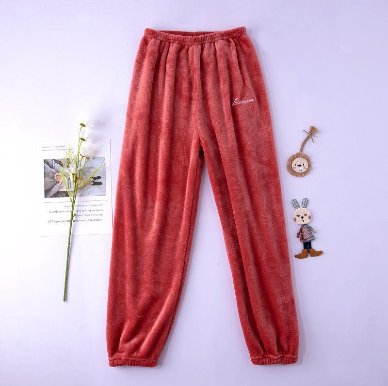 Calças de Pijama de Fleece Coral Femininas de Outono e Inverno Quentes de Pelúcia Calças de Casa de Flanela Cor Sólida Simples Casual Soltas