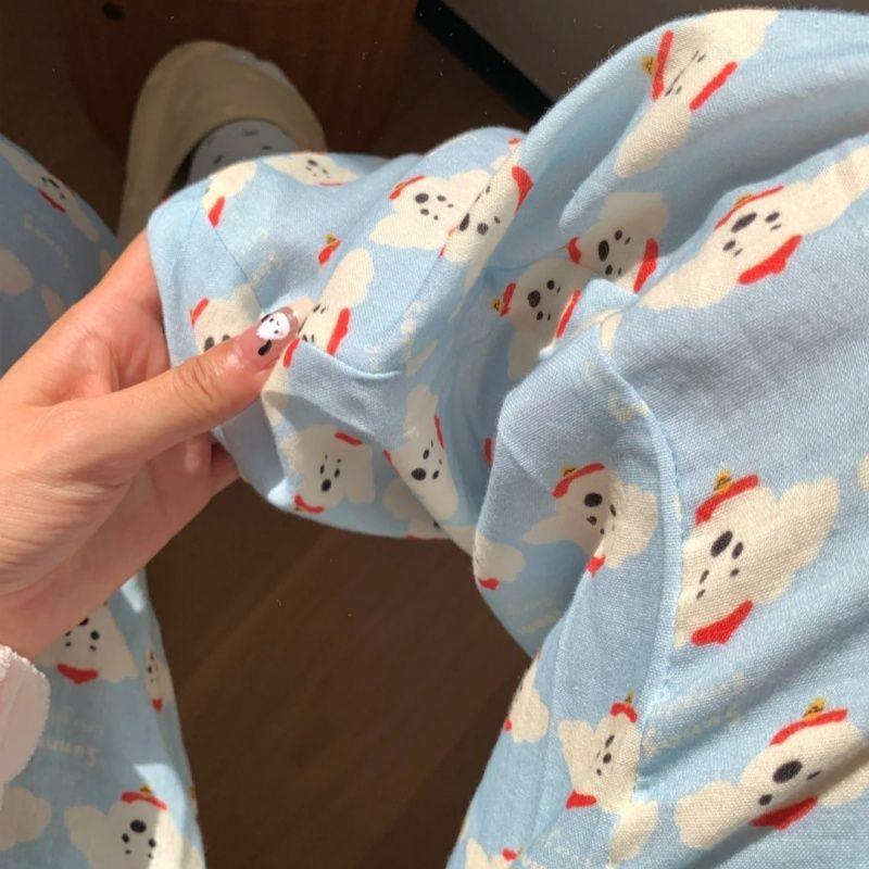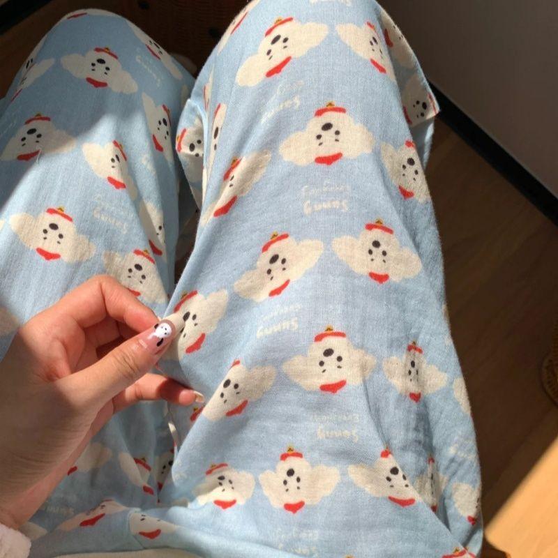 Calças de Pijama Femininas Novo Estilo Verão Soltas Algodão Nuvem Coreano Calças de Lounge Roupa de Dormir para Casa Podem Ser Usadas Fora