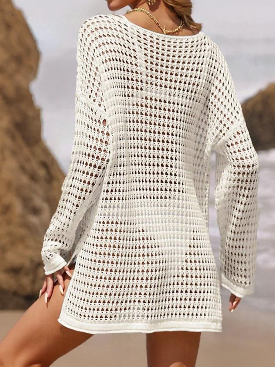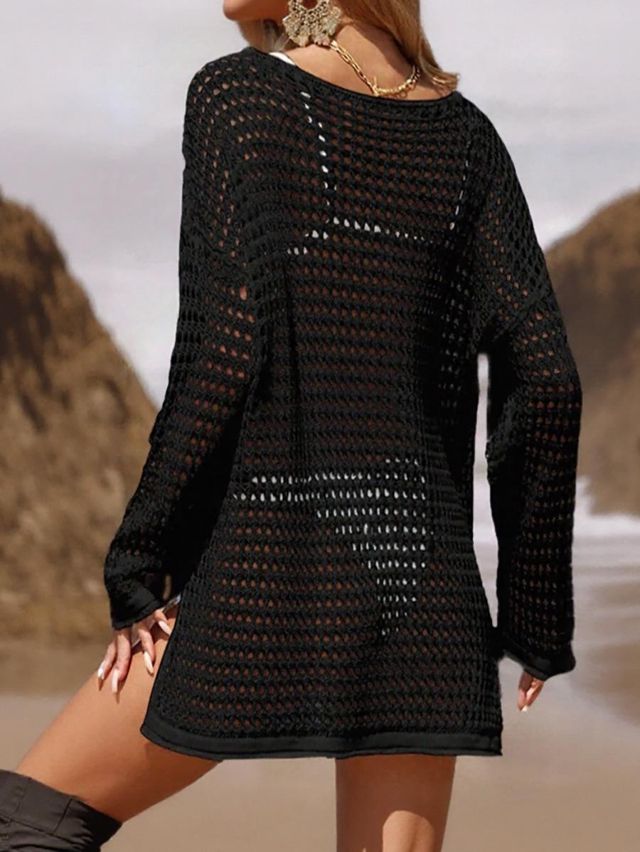 Blusa de Praia de Verão Transfronteiriça 2025 Malha Vazada em Rede Roupa de Praia Verão Camisa Protetora Solar Suéter Vazado