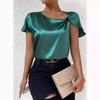 Camisa de cetim de primavera nova, versátil, com decote em V, drapeado, de seda, texturizada, drapeado, manga comprida, estilo simples europeu e americano, 2025