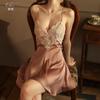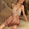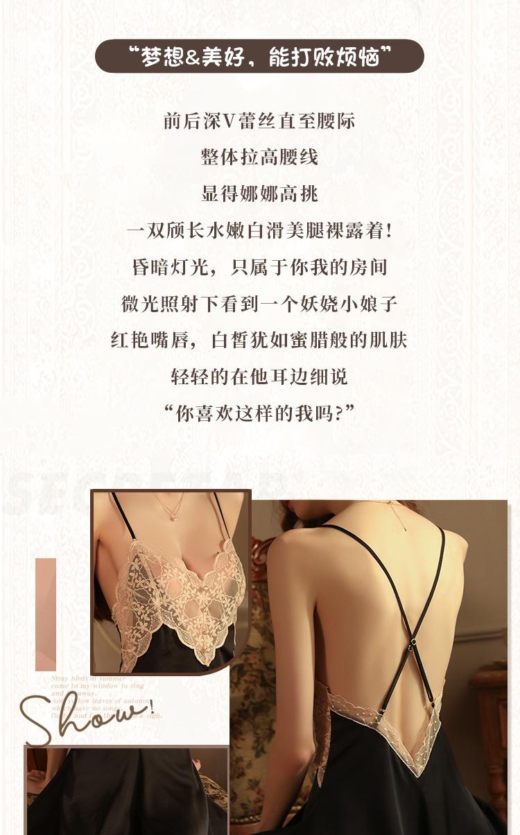 Xianyi Camisola Sexy de Renda Seductora Sem Costas Camisola de Verão Feminina em Seda Gelo Cor Sólida Roupa de Dormir Conjunto Loungewear 455